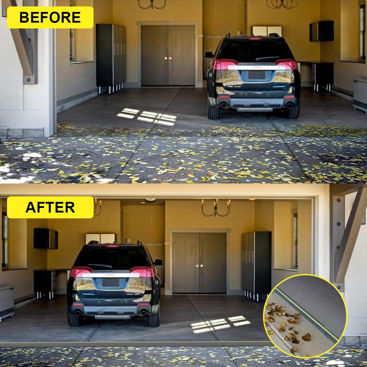 - Special Yellow Prompt Design: The Garage Door Seal With Yellow Safety Strip ensure the garage door weather seal is highly visible for people and vehicles moving in and out. Anti-slip ridges reduce the risk of slipping. The serrated grooved base creates an ideal surface to provide excellent adhesion for the sealant and floor