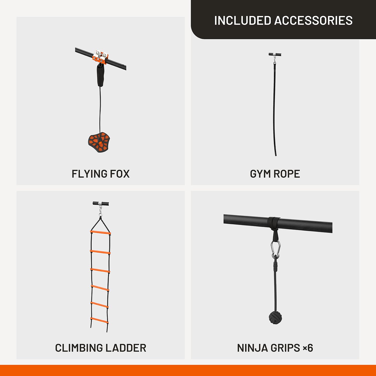 Vuly Adventure Quest Monkey Bars Extra Large Playset & Jungle Gym with Powder Coated Galvanized Steel, Shade Cover, Cargo Net, Ninja Grips, Flying Fox, Gym Rope, Climbing Ladder & Monkey Swing