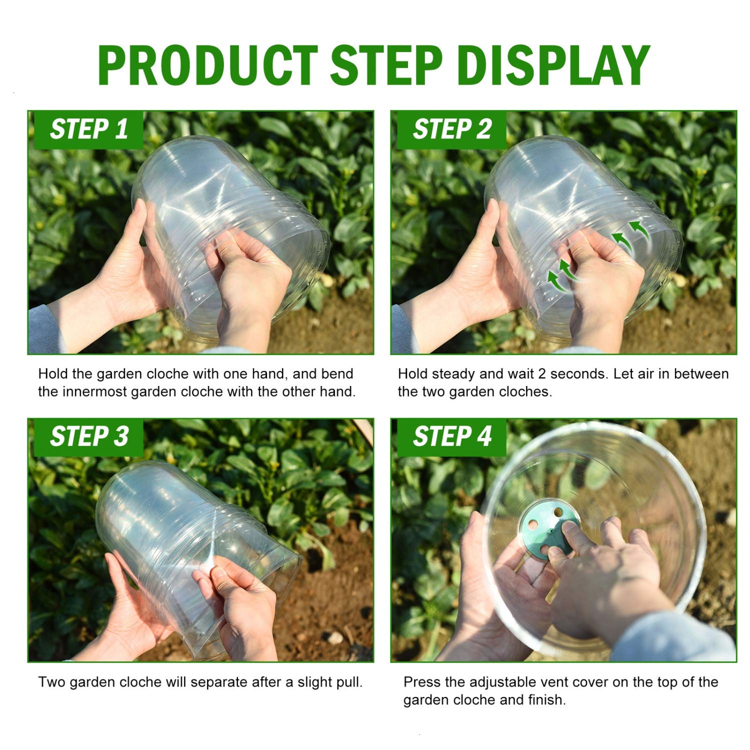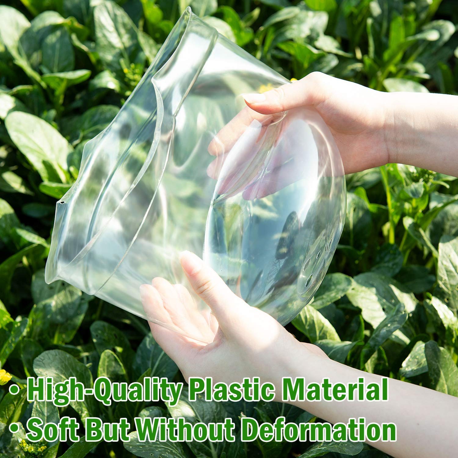 • ★HIGH-QUALITY MATERIAL: The cloche garden domes are made of high-quality PVC. They can automatically restore its original shape after pressing and without deformation. The excellent material can be reused and will last for multiple growing seasons.