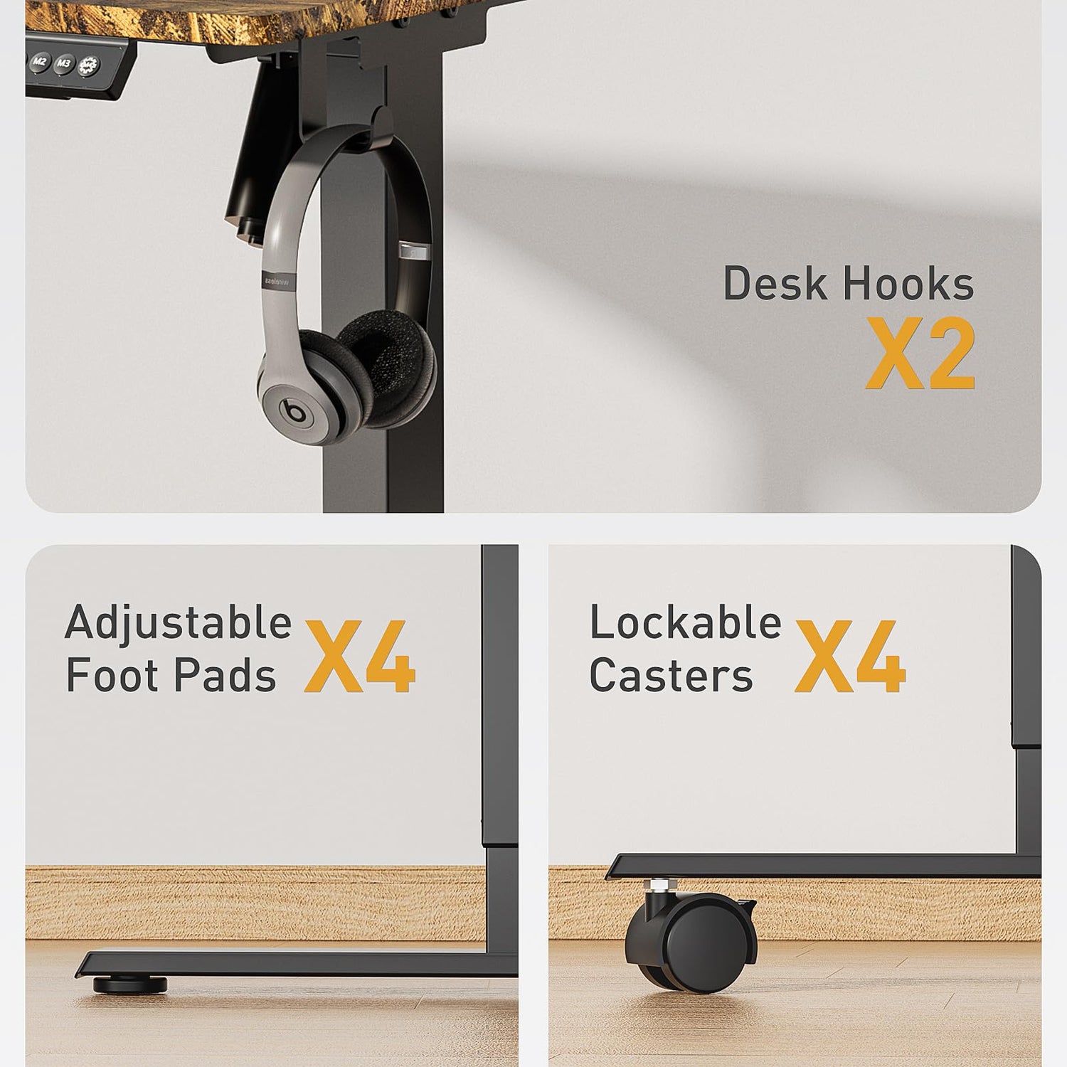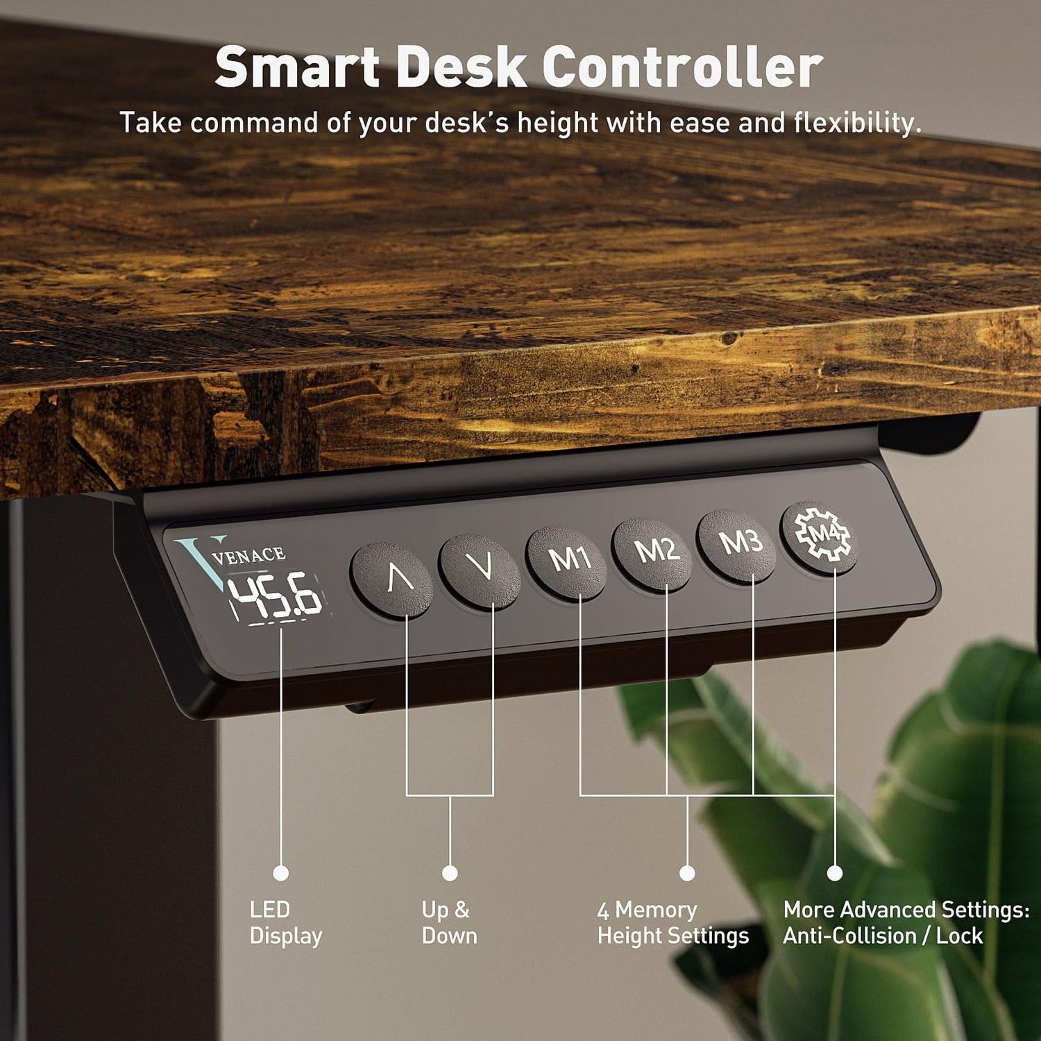 VVENACE 63 Inch Electric Standing Desk Adjustable Height with Wheels,Sit Stand Up Desk,Home Office Desk,Computer Workstation Desk,Gaming Desk,Rolling Desk,Work Desk (Spliced Desktop,Rustic Brown)