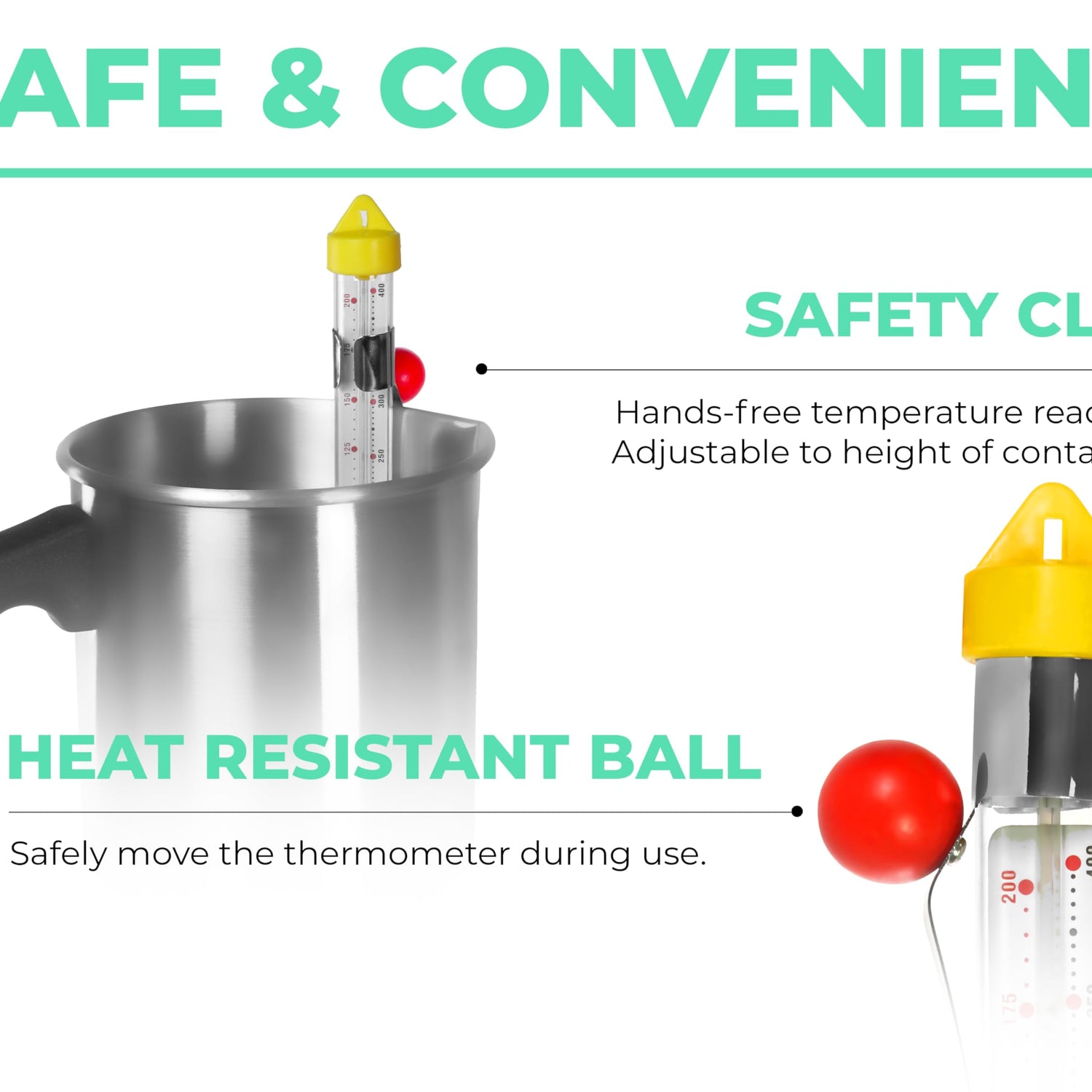 - 🕯️ SAFE OPERATION: Use the built-in steel clip to attach the thermometer to the wax melting pot, sauce-pan, or deep-fryer for hands-free measurements. The heat-resistant red ball on the handle makes it easy to move the thermometer without injury!