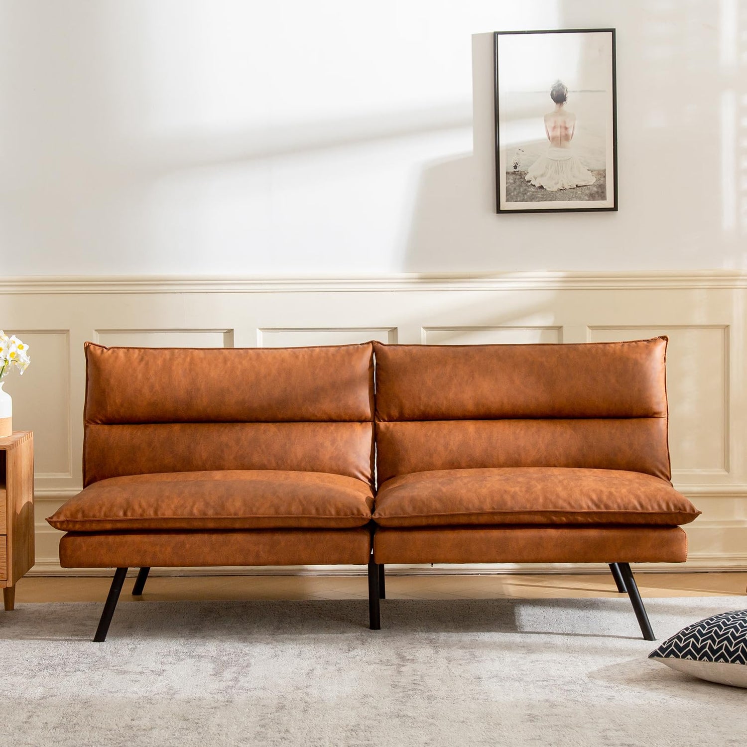 - [Smart Design for Modern Living]: Our sofa bed is filled with 3” of memory foam that keeps the sofa supportive. The brown faux leather modern design allows for easy wiping away of coffee, drink and other stains. Six metal legs with non-slip protective pads add stability while reducing the possibility of scratching the floor