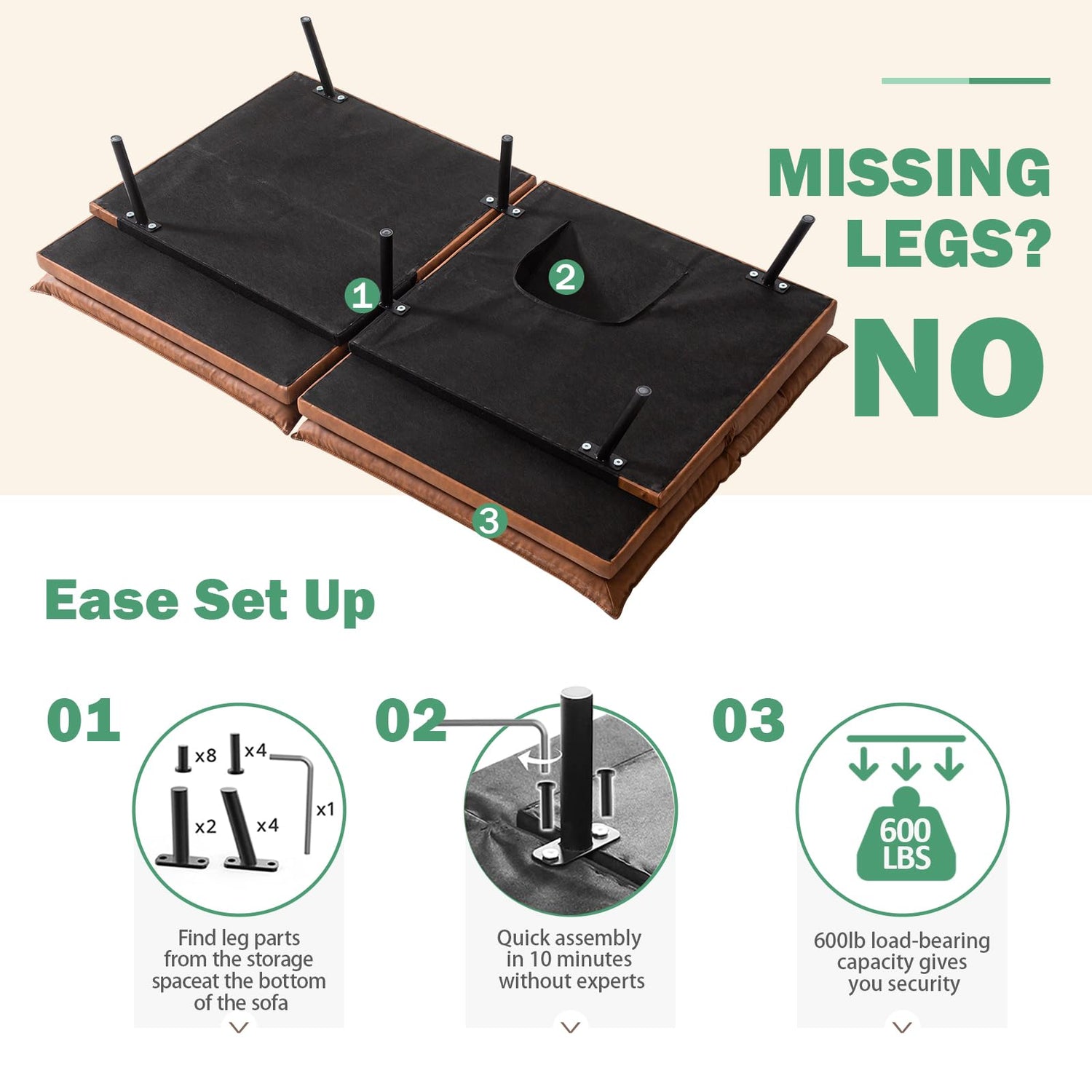 - [Easy Assembly]: This combination sofa is delivered to your home in a box that you can easily carry anywhere in your home. The installation steps are simple, the sofa legs and the parts needed are in a small pocket at the bottom of the sofa. No need for you to prepare any tools, serve to complete the installation