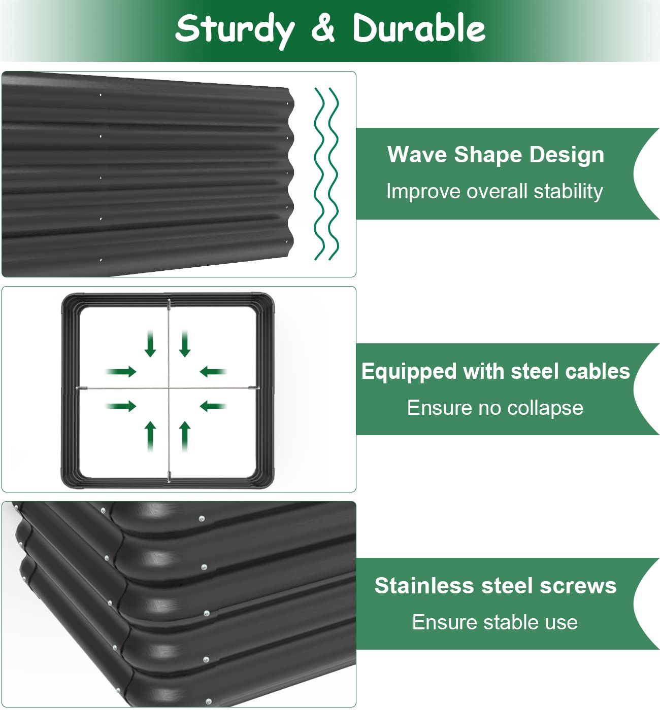 - Multiple Sizes: We offer multiple sizes of raised garden beds to match different use needs. You can choose the appropriate size. Of course, you can also DIY other shapes by disassembling the plates. If you have any questions about our flower beds, please reach out to our customer service team. We will wholeheartedly provide you with pre-sale and after-sales service.