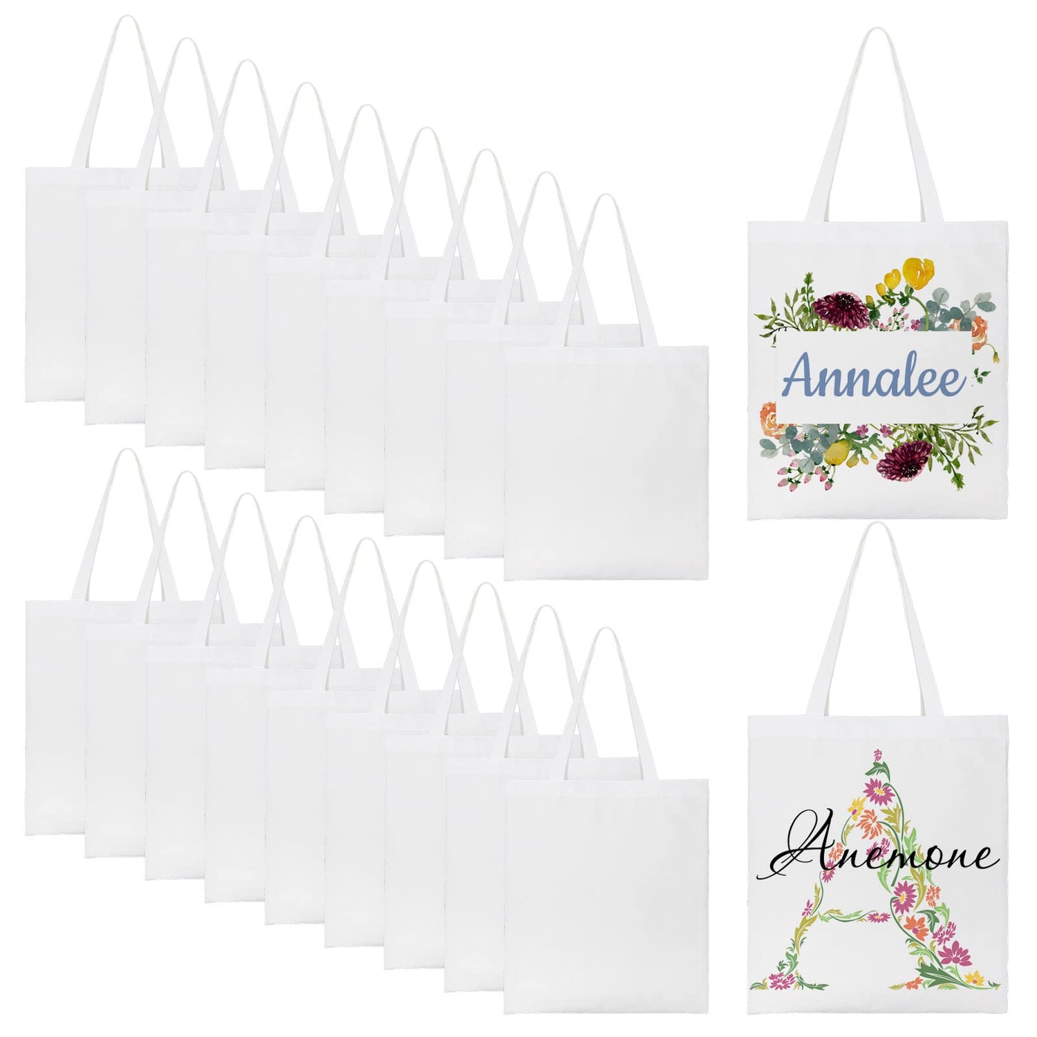 - ♥ Package Included -- You will receive 20 pieces white blank reusable tote bags, The quantity is sufficient to meet your diverse use and replacement requirements. The bags with simple design can match different outfits, like jeans, skirts, T-shirts, suits and pants.