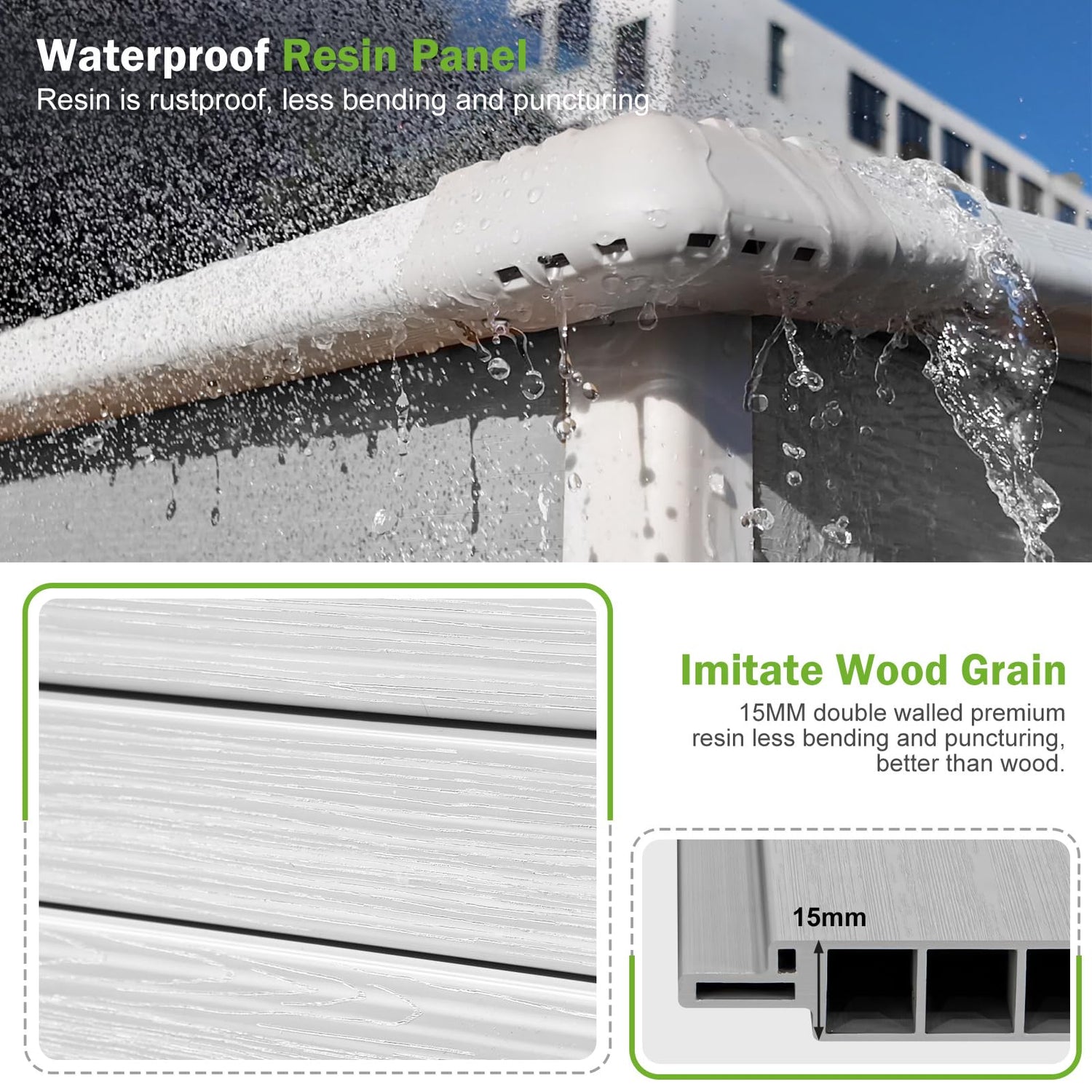 - ✔【Premium Material & Sturdy Construction】WACASA storage shed is crafted with 14MM premium tough polypropylene resin panels, the door and floor adopted double-wall resin construction, which makes the shed more sturdy and durable than others. It's also waterproof, moisture-proof, rustproof and UV-resistant, no bending or puncturing. Worry free for use it under any adverse weather, this high quality shed will help you save maintenance costs and precious time