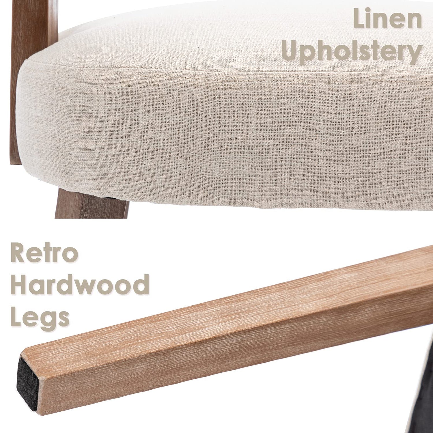 - đˇăComfort That LastsăOur retro dining chairs is made of rich linen fabric, the seat and back are cushioned with high resilient foam and durable spring. The seat is comfortable, durable and won't collapse in a few years.