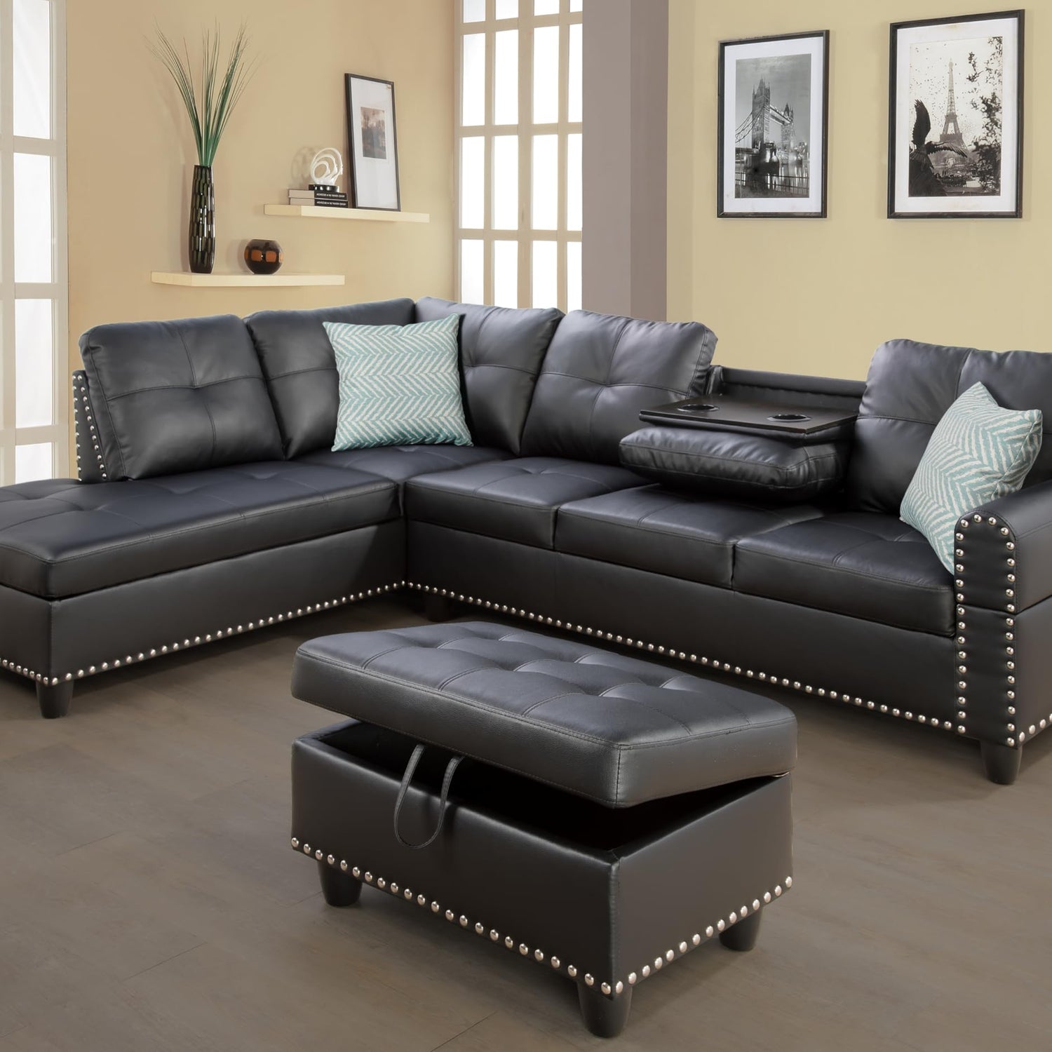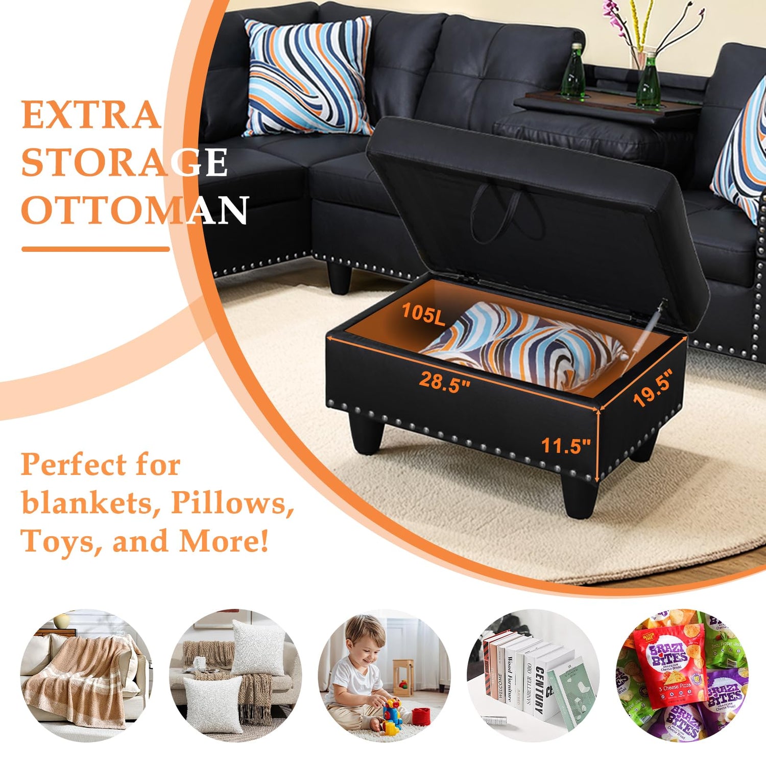 - 【Sofas & Couches for Living Room】This 3-piece sofa-and-chaise sectional has an L-shaped silhouette and seats four people for the big game or movie night. It also includes two toss pillows along with a matching ottoman that has interior storage space for blankets and more.