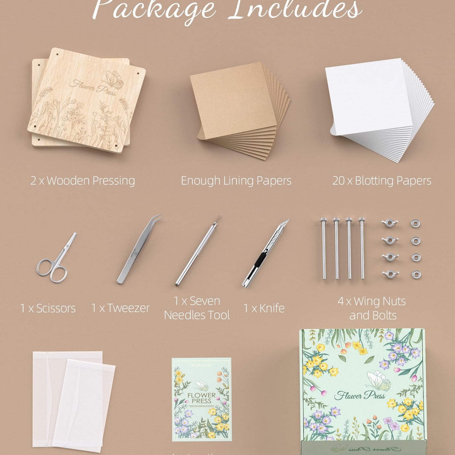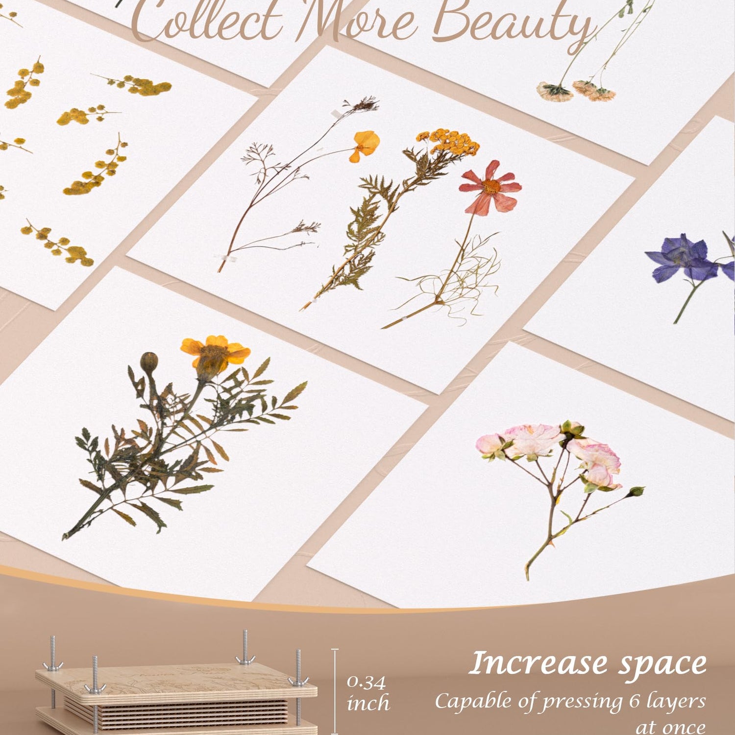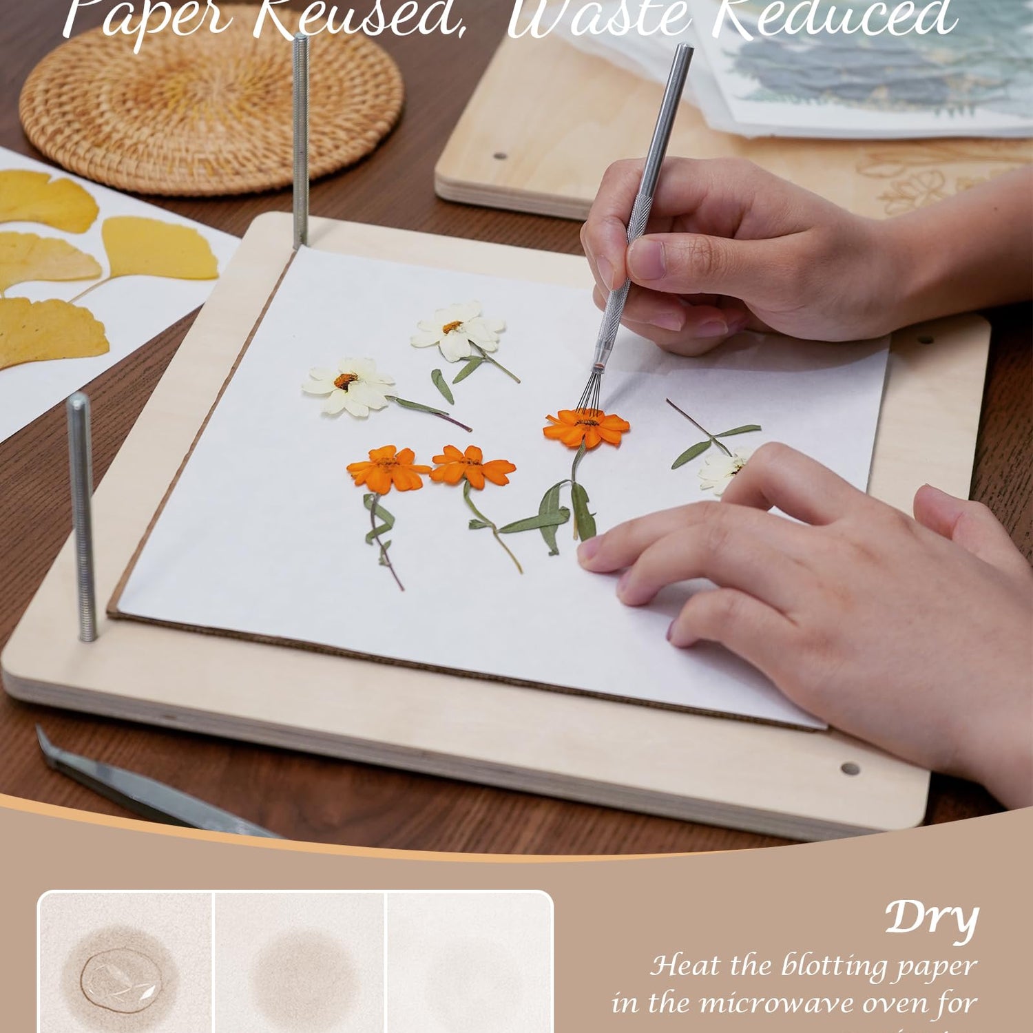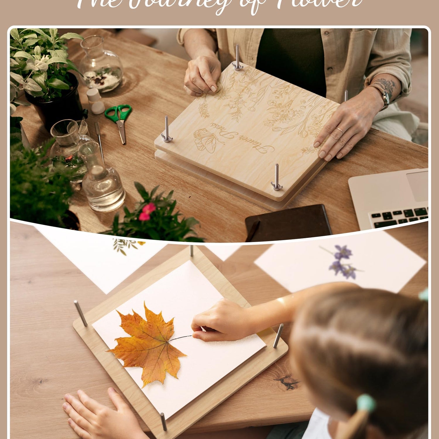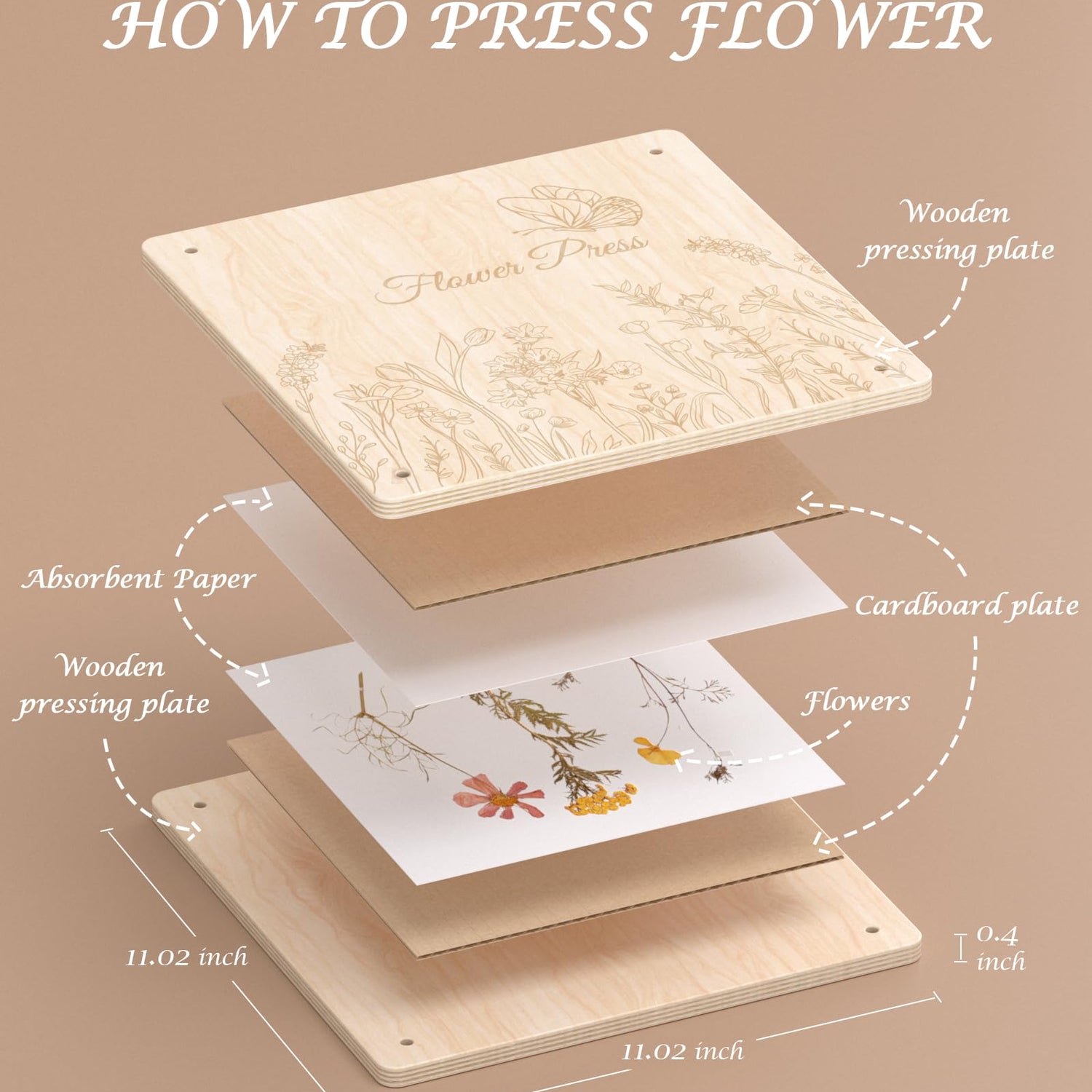 Wakhow Flower Press Kit – 11" x 11" Large Wooden Flower Presser for Adults & Teens | DIY Bouquet Preservation & Dried Flower Art | Ideal Gift for Nature & Craft Lovers