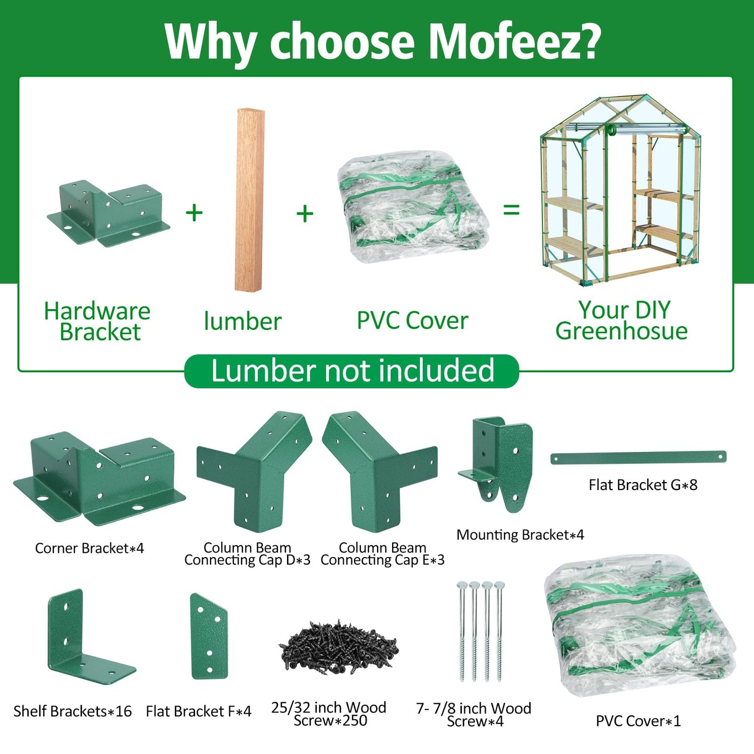 - STRONG ENOUGH: We designed it with the idea of providing a better solution and stronger greenhouse for all customers who want DIY greenhouse, using the combination of metal bracket + lumber, greenhouse won't be hit by heavy winds and rain like plastic connectors, so that your plants can go through every season peacefully!