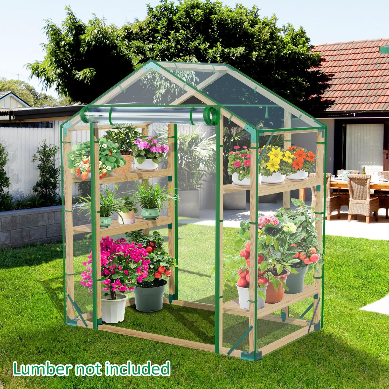 - SATISFY YOUR DIY FUN: we provide all connecting items including brackets and PVC cover, you only need to buy lumber to build a more sturdy and portable green houses for outside! This walk in greenhouse measures 65 x 39 x 81 inch (L*W*H)