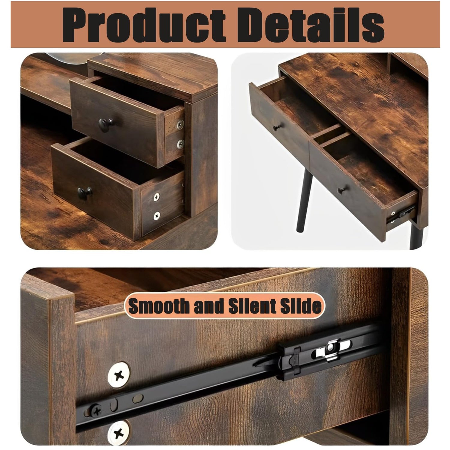 - 【Large Storage Capacity】The size of this vanity desk with mirror and lights is 52.8"H x 15.7"W x 29.1"D,Can be used as a table and also as a bedside table,This makeup vanity has four drawers and open compartments for added storage space and organized storage at a glance