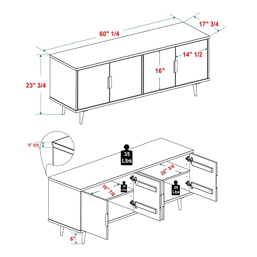 Details: Simple, storage savvy, and sleek. This TV stand boasts the best of both worlds with a mid-century silhouette, but all the convenience of modern storage. Two adjustable shelves within the cabinets lend the piece convenient and customizable storage, while a large open cubby offers the perfect perch for all your media components and décor. With a solid wood build, this piece is meant to stay exactly where you think it suits your place best for years. Complete your abode’s aesthetic with the matching coffee and side tables that feature the same simple yet sleek silhouette.
