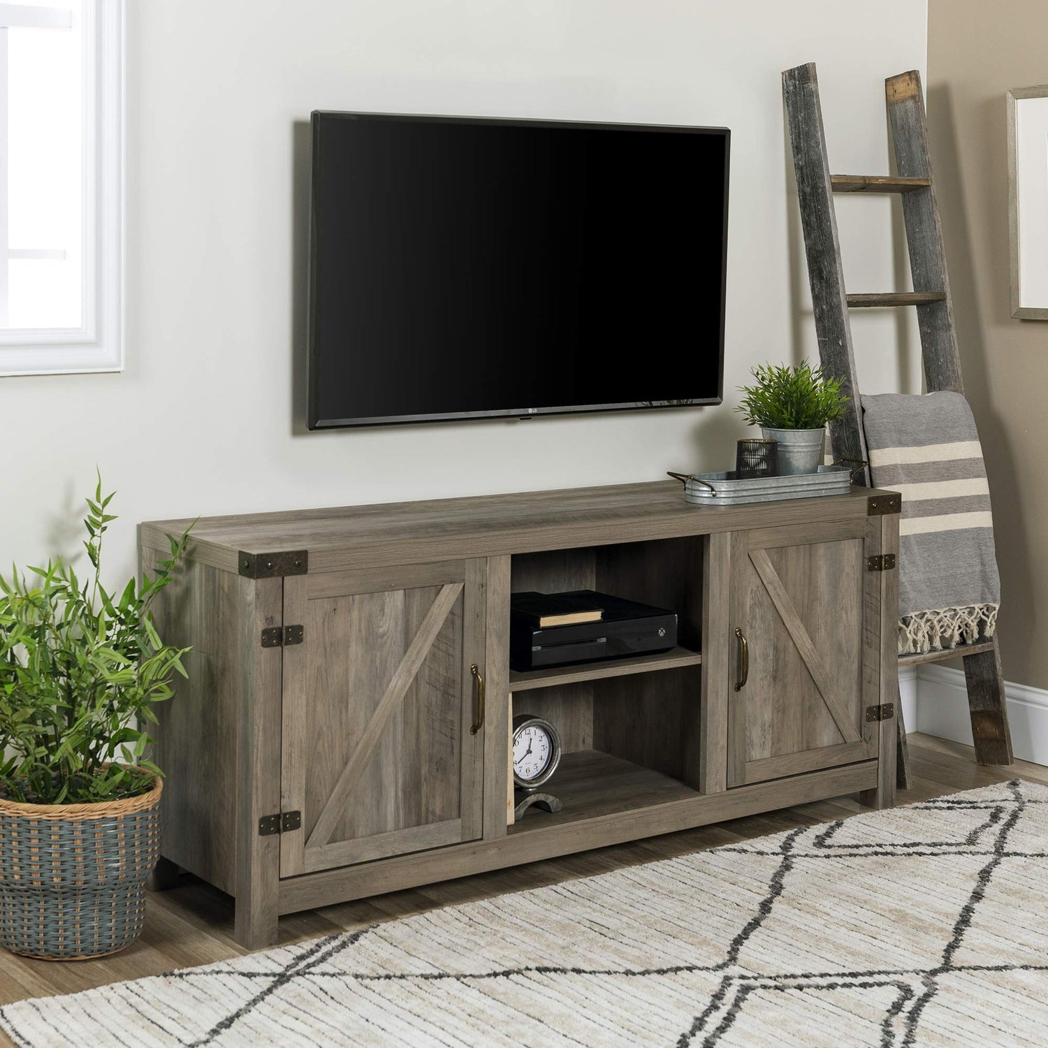 Walker Edison Georgetown Modern Farmhouse Double Barn Door TV Stand for TVs up to 65 Inches, 58 Inch, Grey