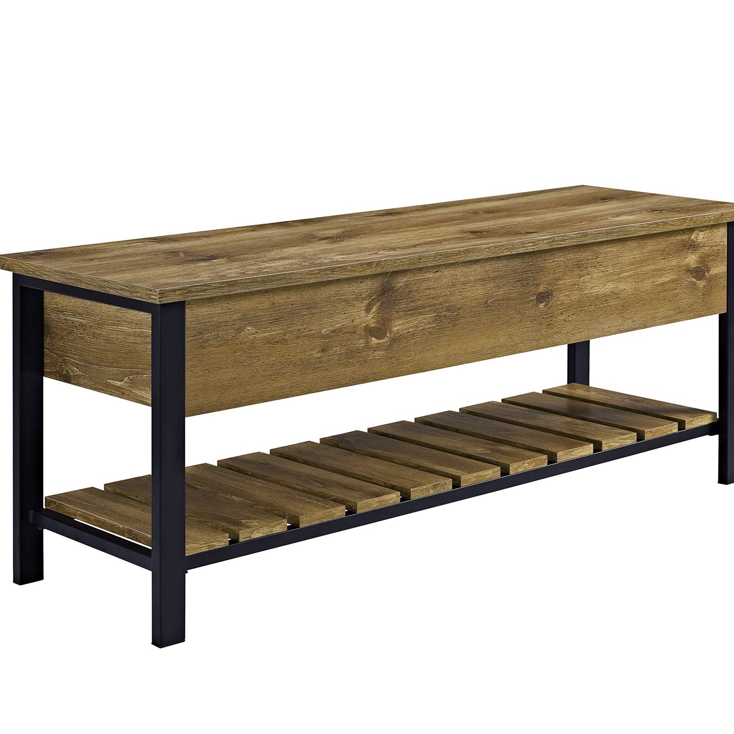 Walker Edison Julian Rustic Farmhouse Lift Top Entry Bench with Bottom Rack, 48 Inch, Barnwood