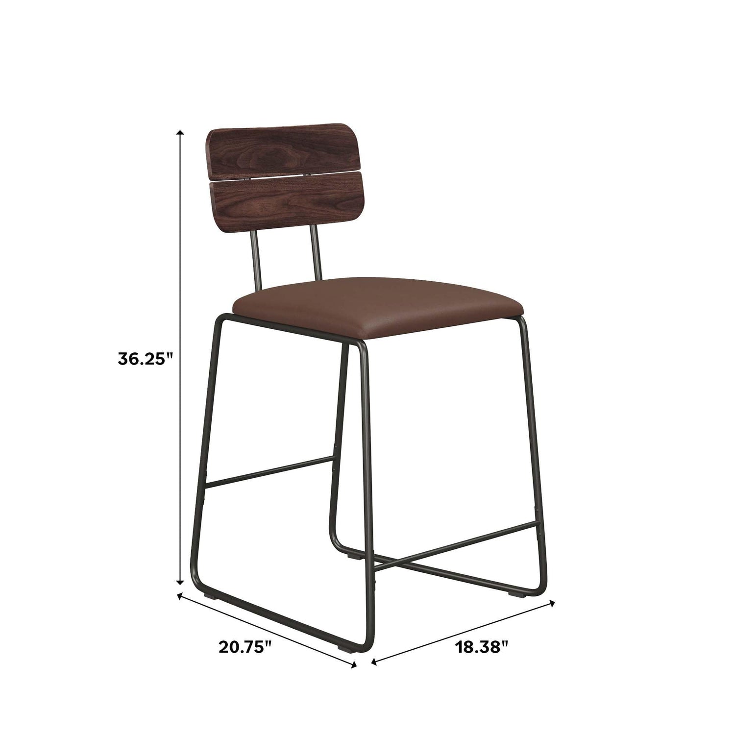 Walker Edison Modern 2-Piece Minimalist Counter Stools with Wooden Back, Set of 2, Brown