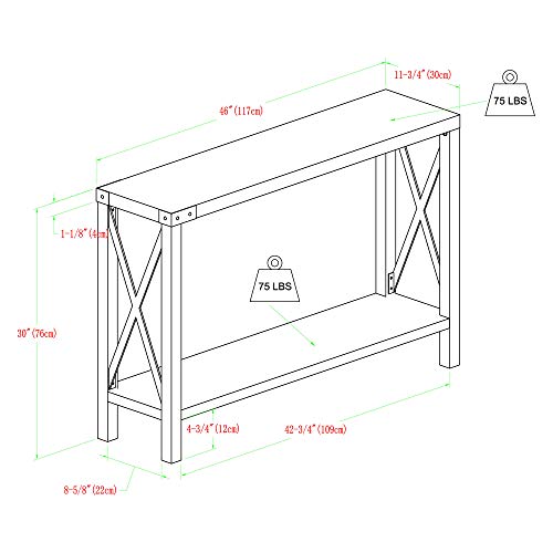 Details: With this entry table, you’ll have a stylish entryway in no time. The urban industrial and charming, farmhouse style create a warm and inviting feel to your home, you’ll enjoy having. With metal accents on the corners and x-shaped sides for an intriguing design. A lower shelving made from durable laminate, provides a surface for your shoes when you get home or to decorate.