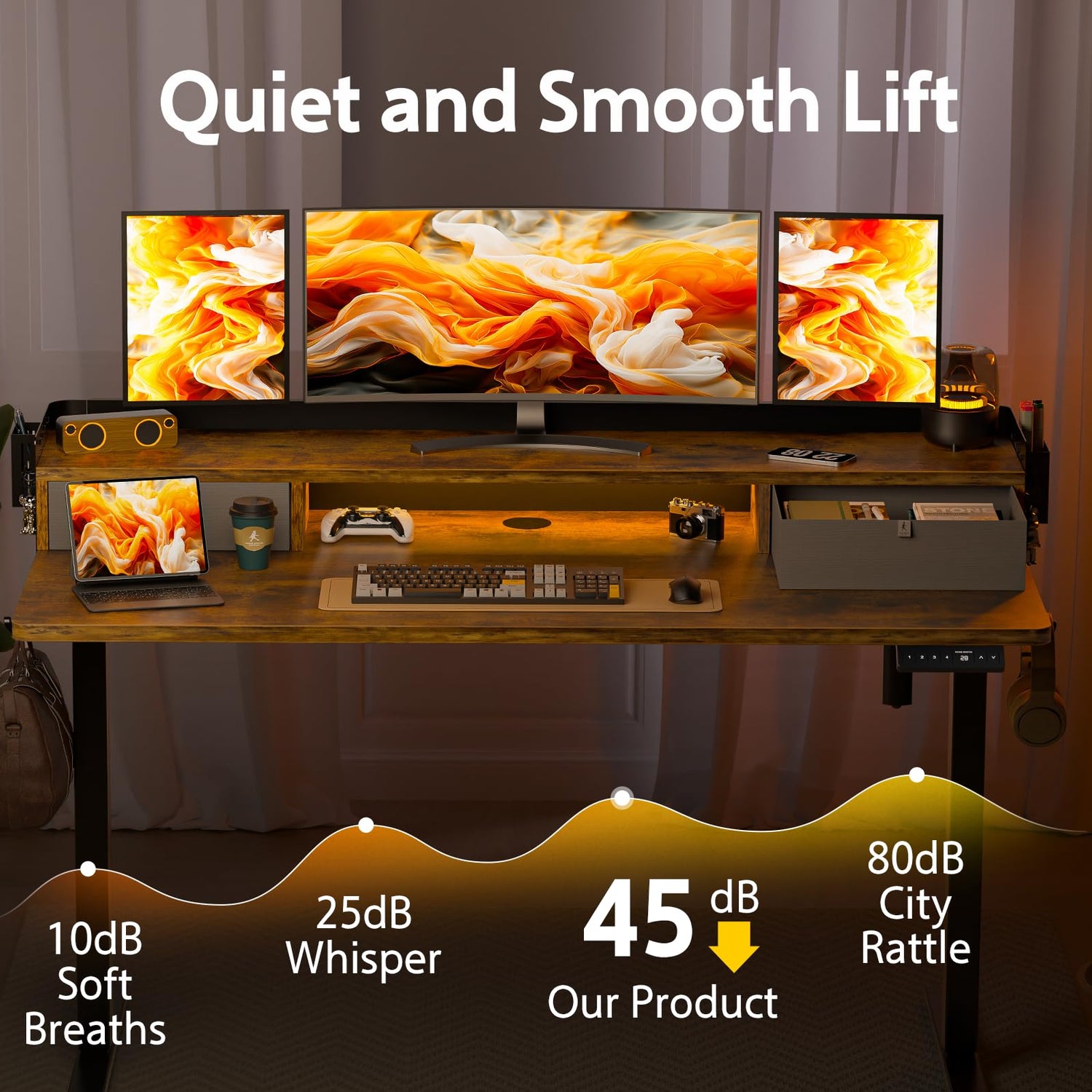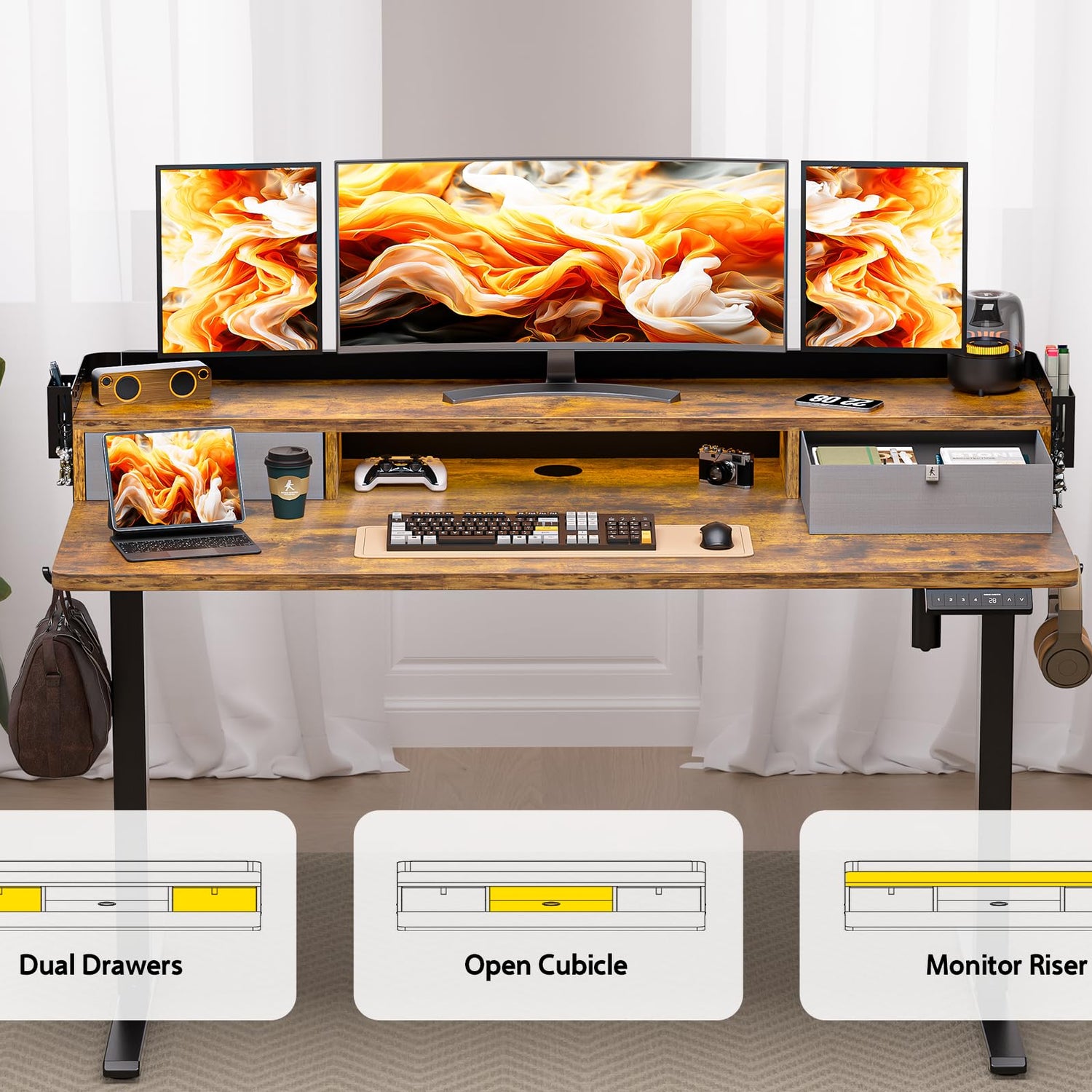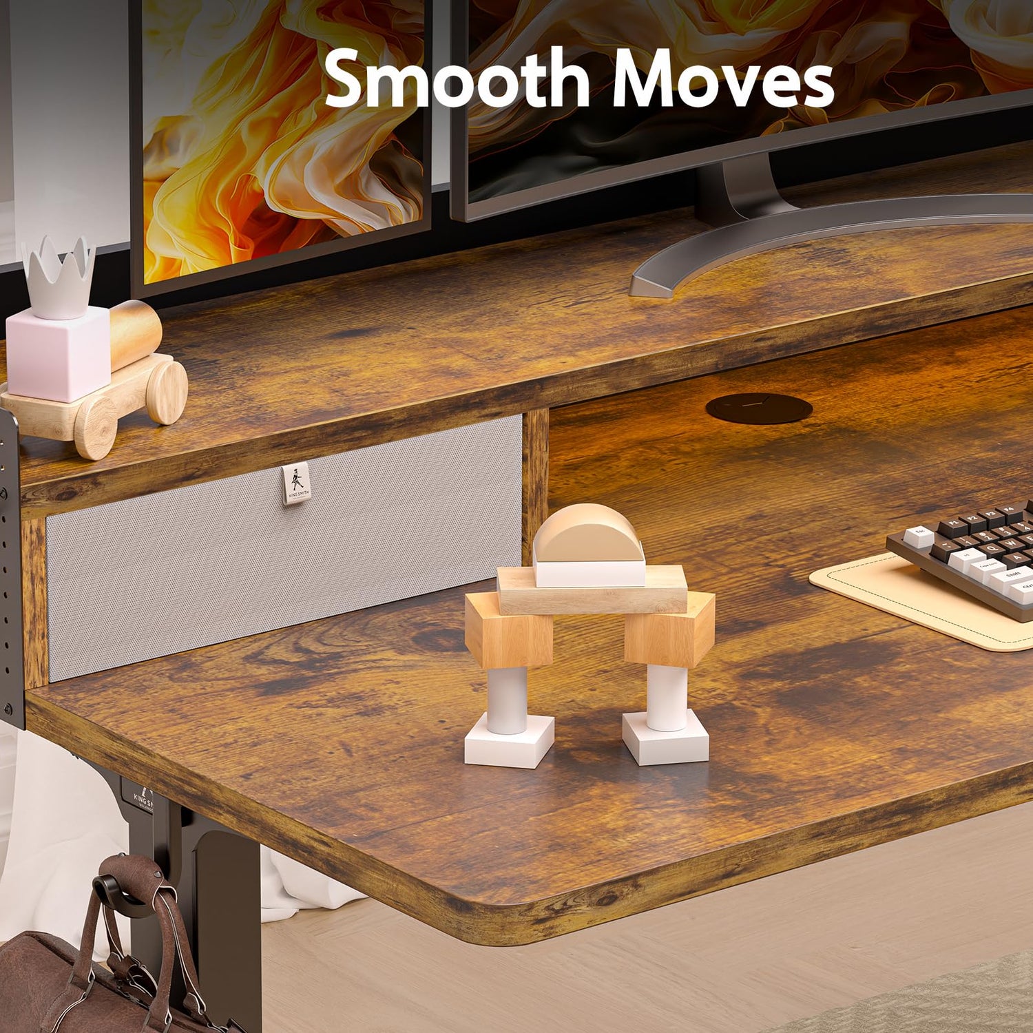 WALKINGDESK 48x24 Inches Electric Standing Desk with 2 Drawers, Height Adjustable Stand up Desk for Home Office, Ergonomic Sit to Stand Desk with Storage Shelf, DIY Board, Hooks, Rustic Brown