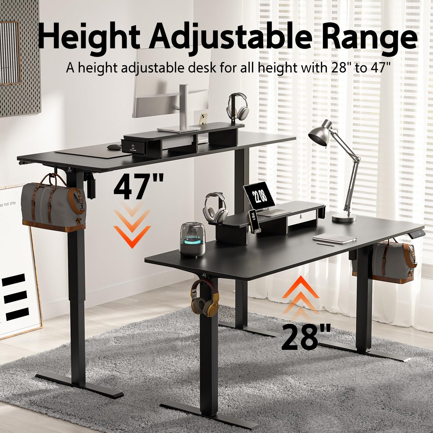 - Electric Lifting System: The sit to stand desk has advanced motor that can support height adjustment between 28''-47'' with low noise (< 45 dB) while running. The lifting speed is 20mm/s. Switch from sitting to standing in seconds!
