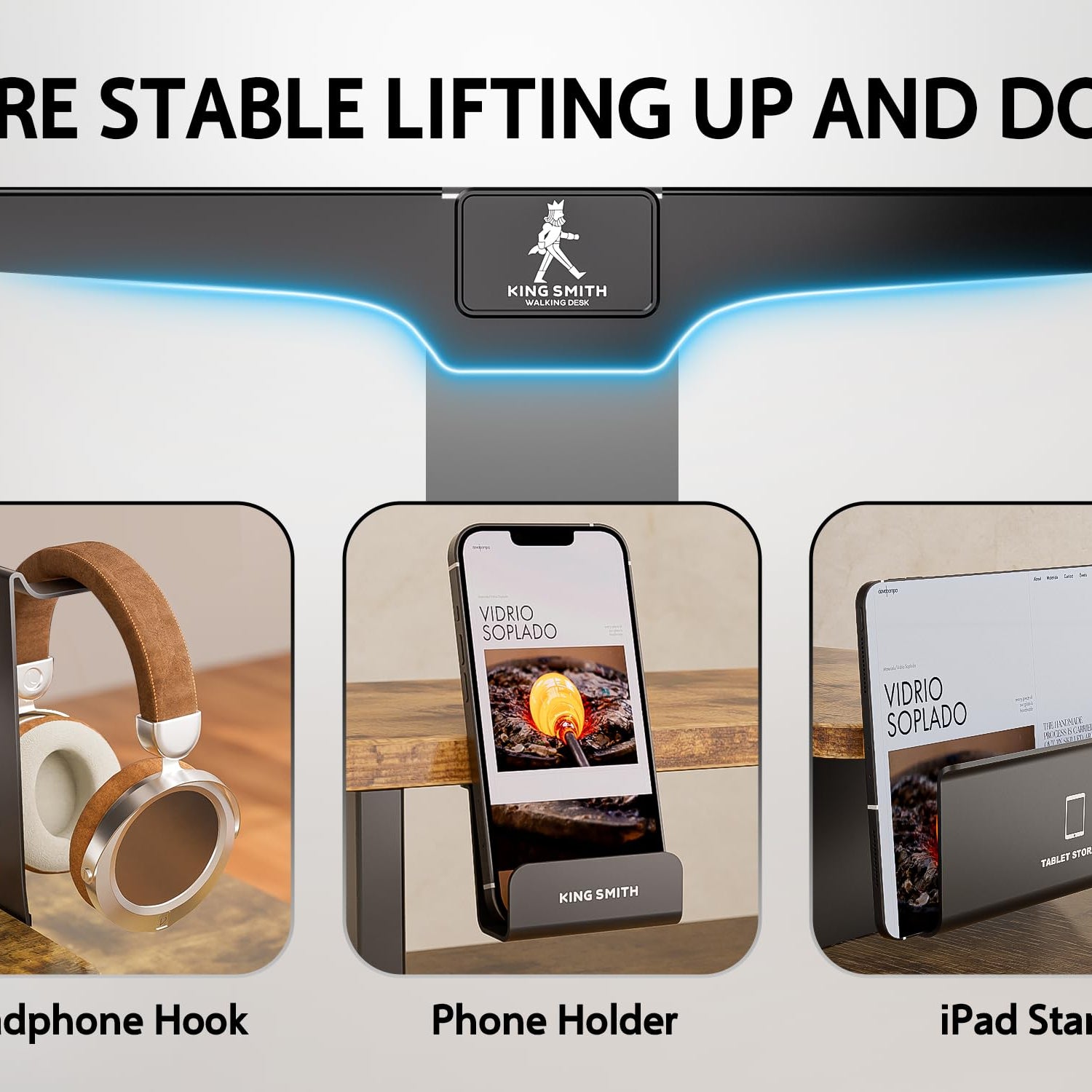 - Ideal Computer Workstation: Designed with many thoughtful storage ideas, such as 1 fabric drawer, 1 phone holder, 1 ipad stand, 1 headphone hook and 2 bag hooks, WALKINGDESK height adjustable desk creats a perfect working room for every home office worker.