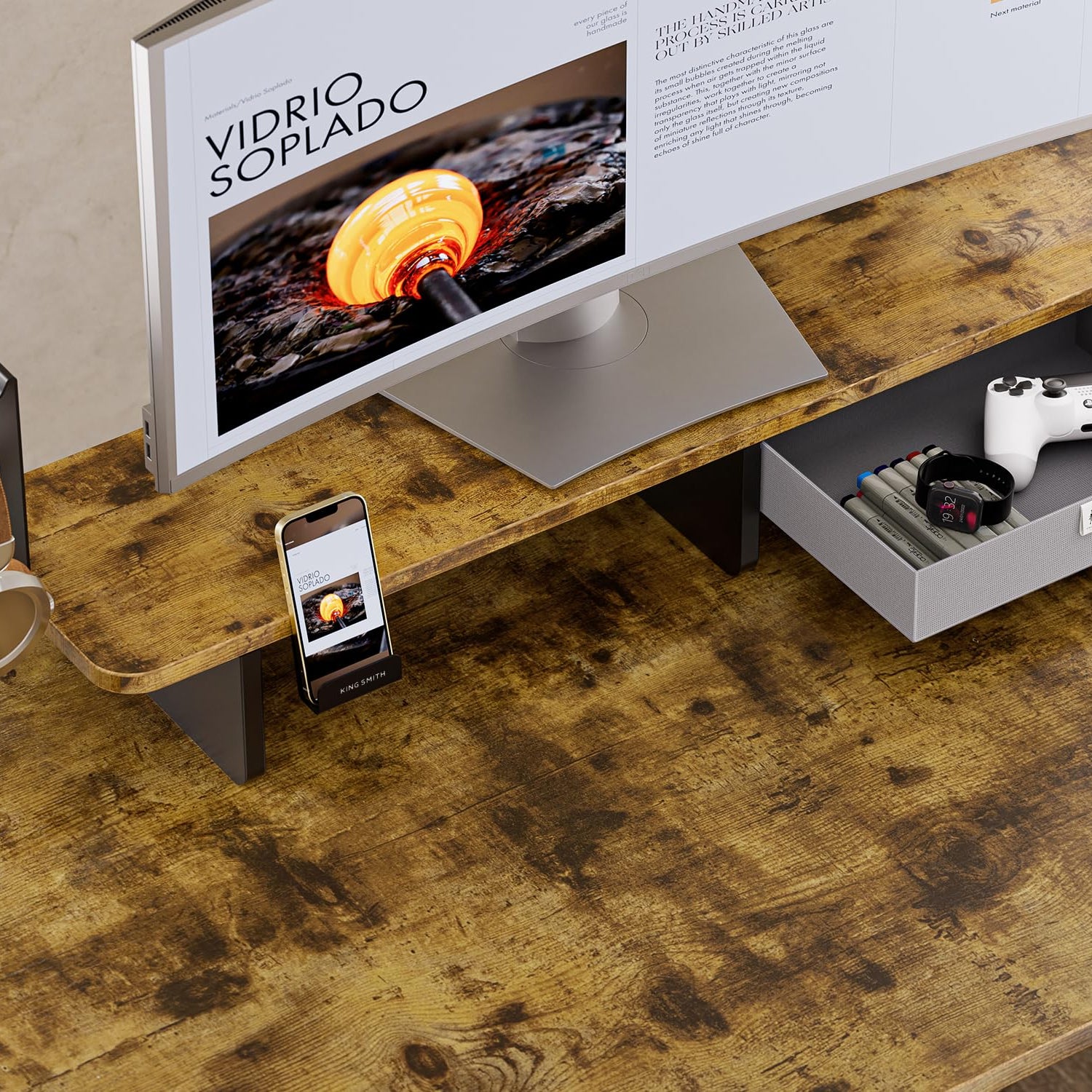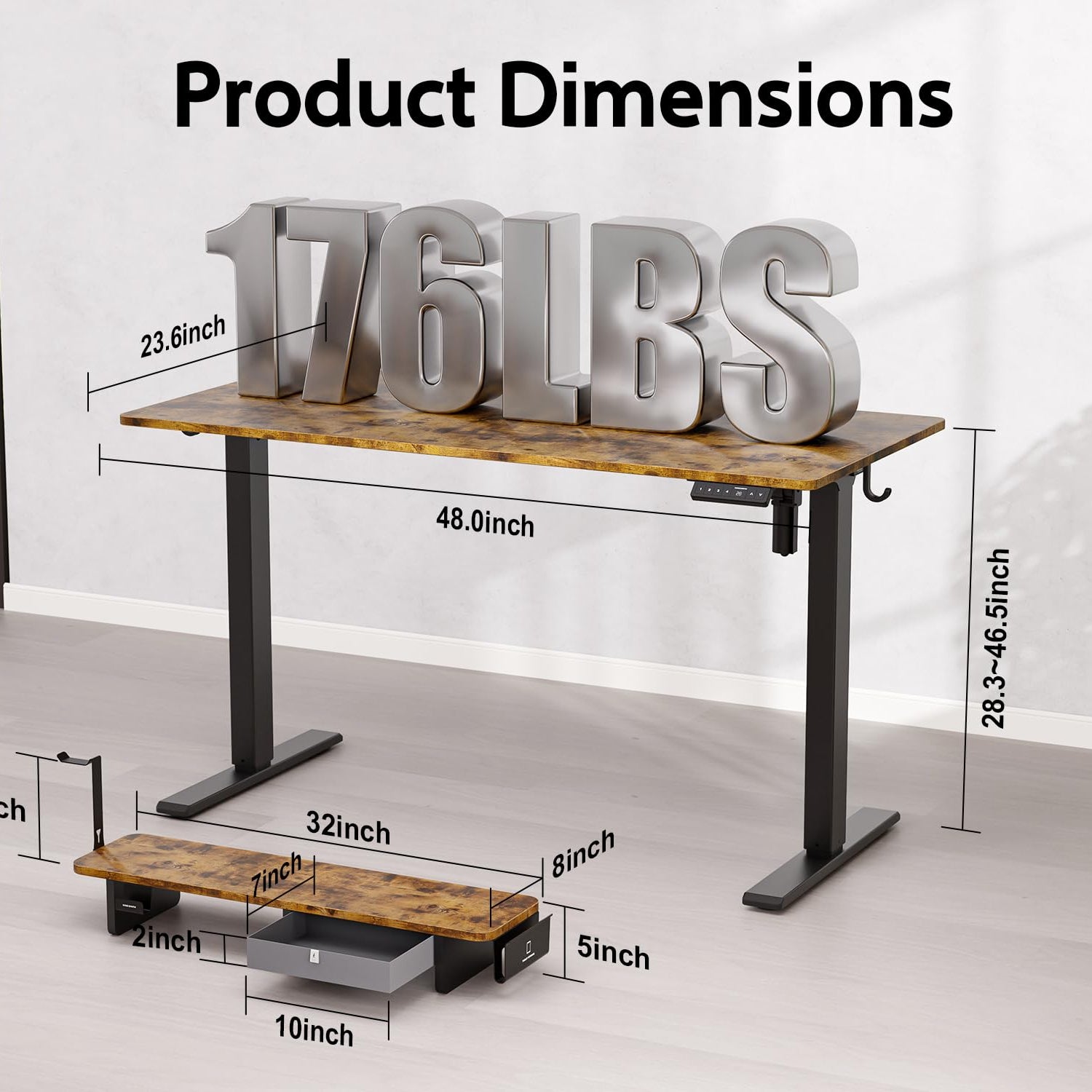 WALKINGDESK 48x24 Inches Electric Standing Desk with Drawer and Monitor Stand, Height Adjustable Stand up Desk for Home Office, Ergonomic Sit to Stand Desk with Phone Holder, 3 Hooks, Rustic Brown