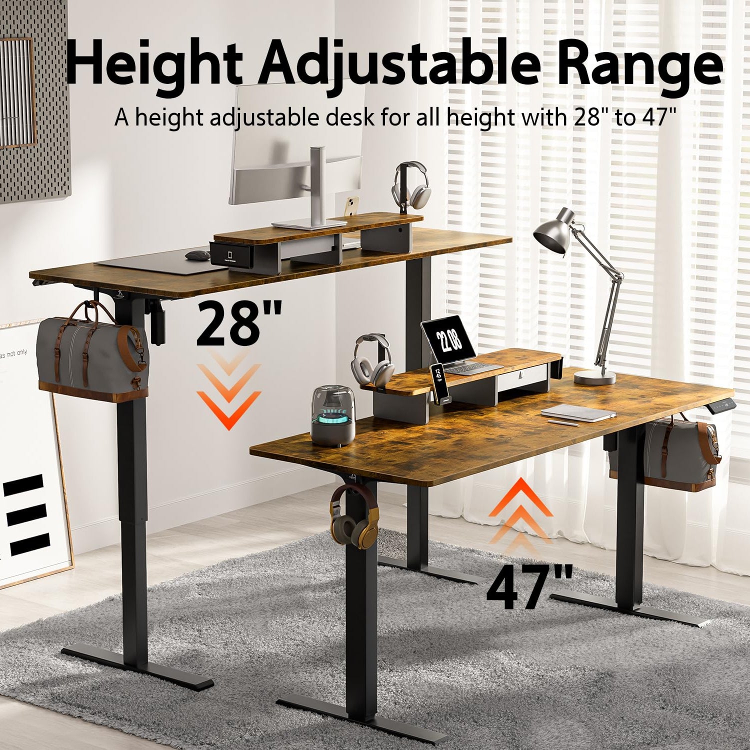 - Electric Lifting System: The sit to stand desk has advanced motor that can support height adjustment between 28''-47'' with low noise (< 45 dB) while running. The lifting speed is 20mm/s. Switch from sitting to standing in seconds!