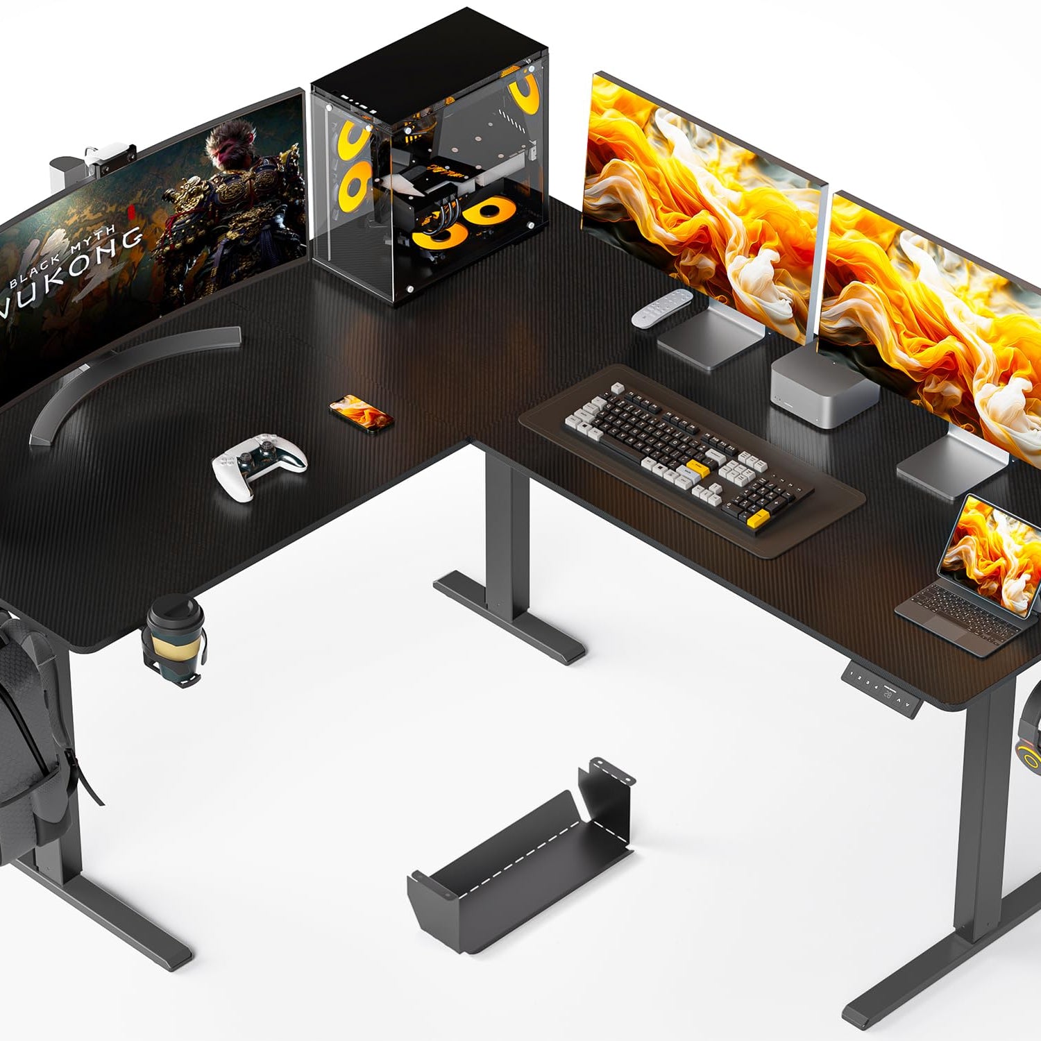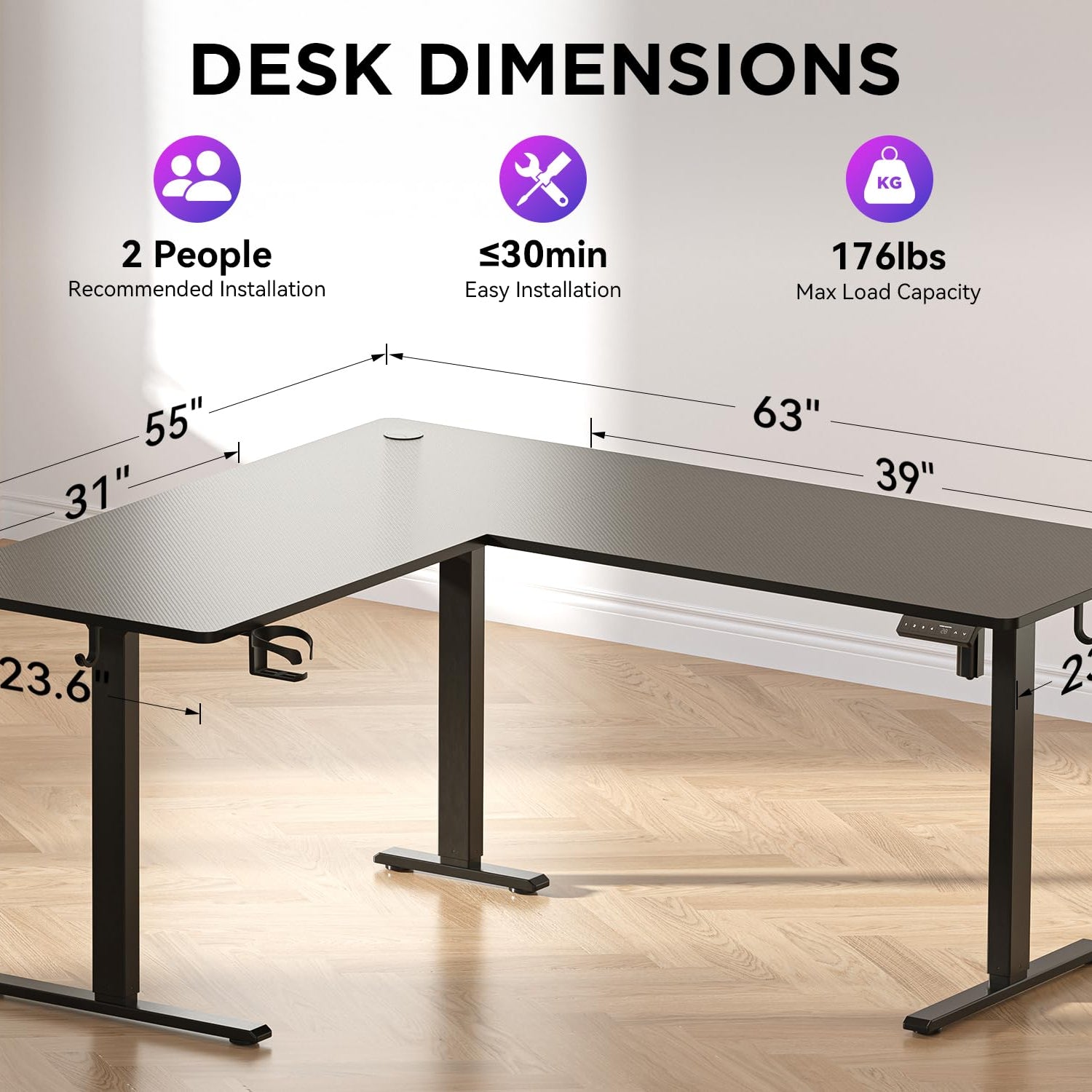 - Spacious L-shape Workstation: WALKINGDESK L shaped adjustable height desk has plenty of space to work or game. L-shaped corner design is very nice in a corner at your home and maximizes help you to save space, and the round corner design better protects your family from hurting.