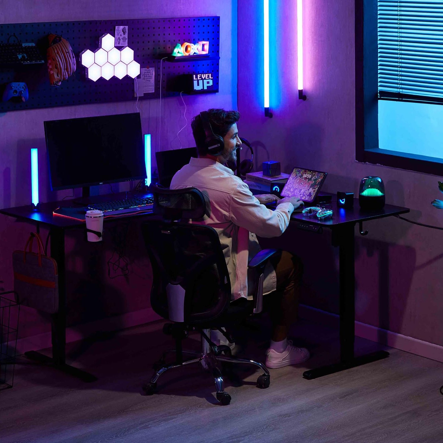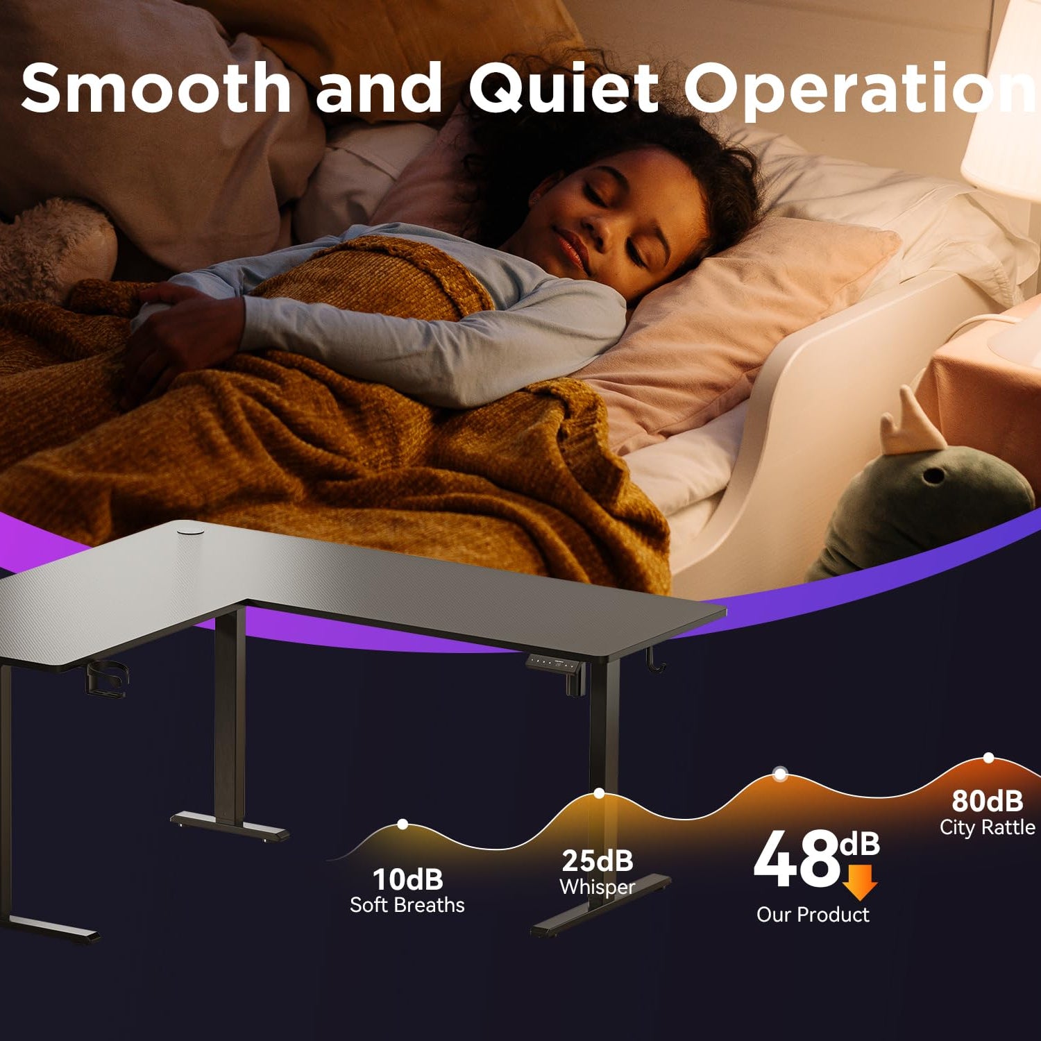 - Electric Height Adjustable Desk: The L-shape standing desk has 6 buttons for your daily use, and 4 preset memory buttons satisfy your different height requirements from 28.3"-46.5" with low noise (< 48 dB) while running. The lifting speed is 20mm/s. Switch from sitting to standing in seconds!