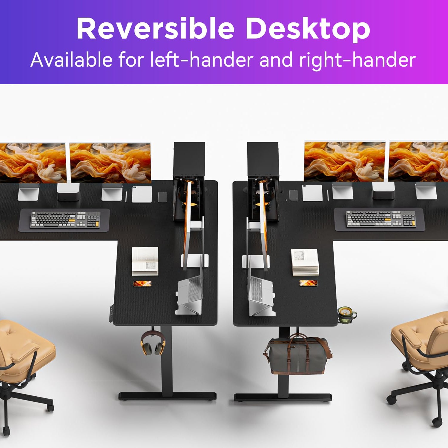 - Powerful Lifting System: The corner standing desk has advanced lifting mechanism that supports up to 176lbs, which can hold 3 desktop PCs, 1 laptop and other office supplies. Additionly, you can assemble the desk with the long side on your left or right to match your place and preference.