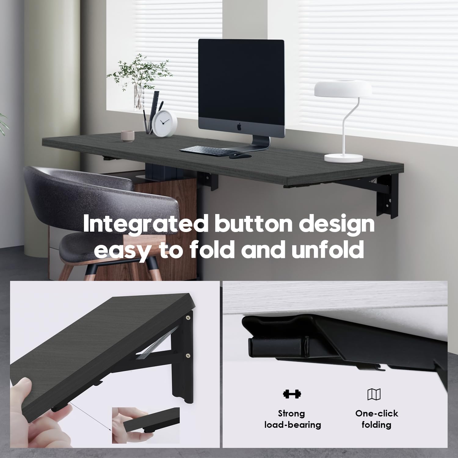 Details: Say goodbye to cluttered spaces! After installing this heavy duty wall mounted folding table, simply press the button on the stand to fold it against the wall and pull it away when you need it. It makes the most efficient use of your space.