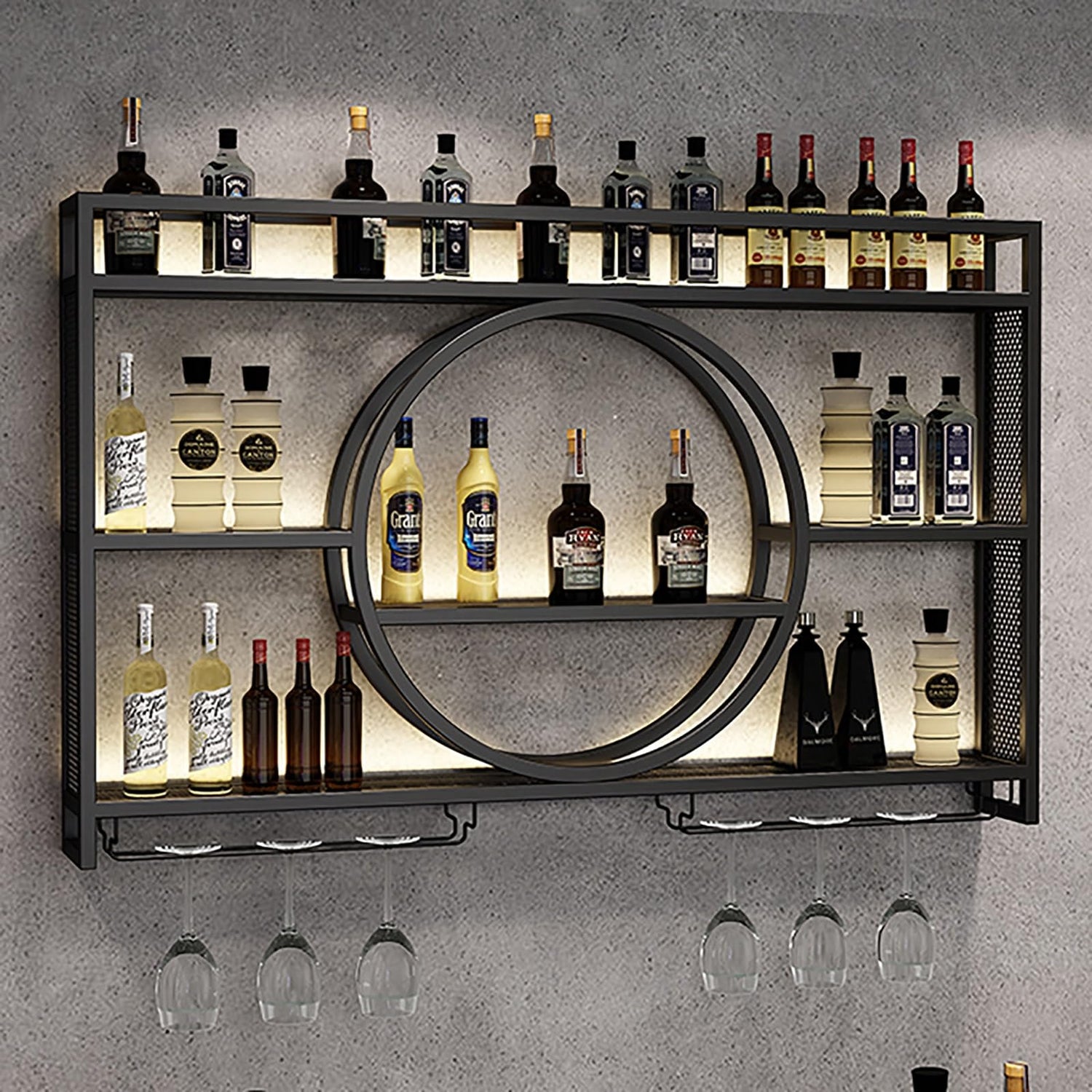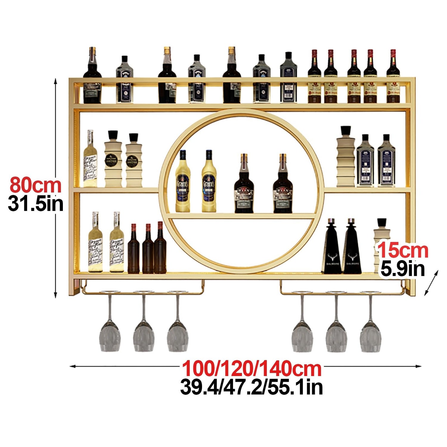 - Material: This liquor bottle display shelf cup holder is made of high-quality metal materials, the 3-tier wall mount is durability, the sturdy structure can withstand considerable weight. The sturdy design guarantees stability and durability, providing a reliable storage solution for your valuable bottles.