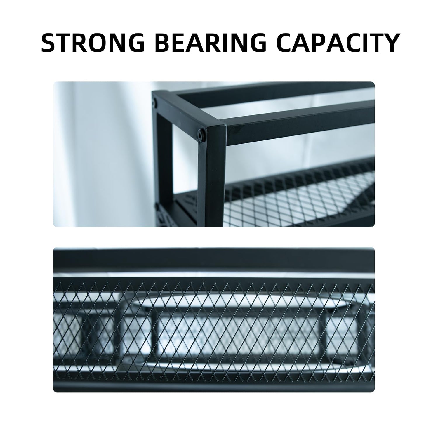 - 【Thickened material】: Made of thickened iron material, with good gloss, strong load-bearing capacity, stable structure, high temperature baking paint 260°C-300°C, no rust or paint peeling, and made through multiple processes; In addition, the reinforced structure and anti-fall bars not only increase stability but also prevent items from falling.
