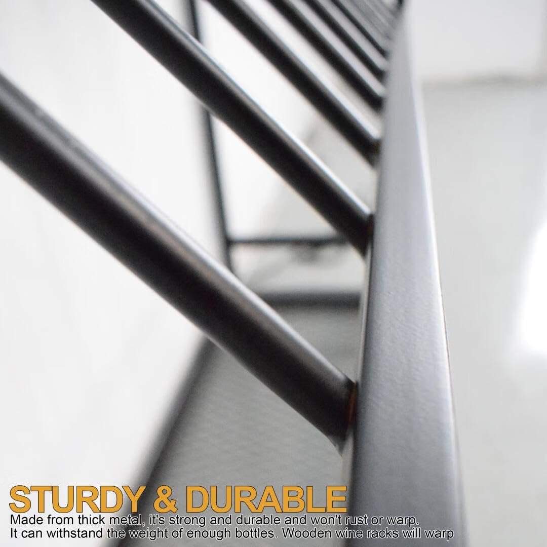 - STURDY & DURABLE- Made of thick metal, this wine rack is sturdy and durable, able to withstand the weight of multiple bottles without rusting or deforming.