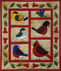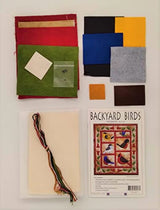 Details: Backyard Birds Wall Quilt Kit from Rachel's of Greenfield - SKU: K0417. Carefree and happy, backyard birds bring color, song, and joy to our lives. A Goldfinch, Black-Capped Chickadee, Bluebird, Cardinal, Robin, and Hummingbird gather inside a floral border. The finished size is 13”x 15”. The colors are red, green, paper bag, gold, blue, gray, brown, white, and black. Our Backyard Birds Quilt kit includes: - all woolfelt for applique - all fabrics (100% cotton) for background borders - back and binding - batting - embroidery floss - patterns - illustrated instructions. FREE DOMESTIC SHIPPING