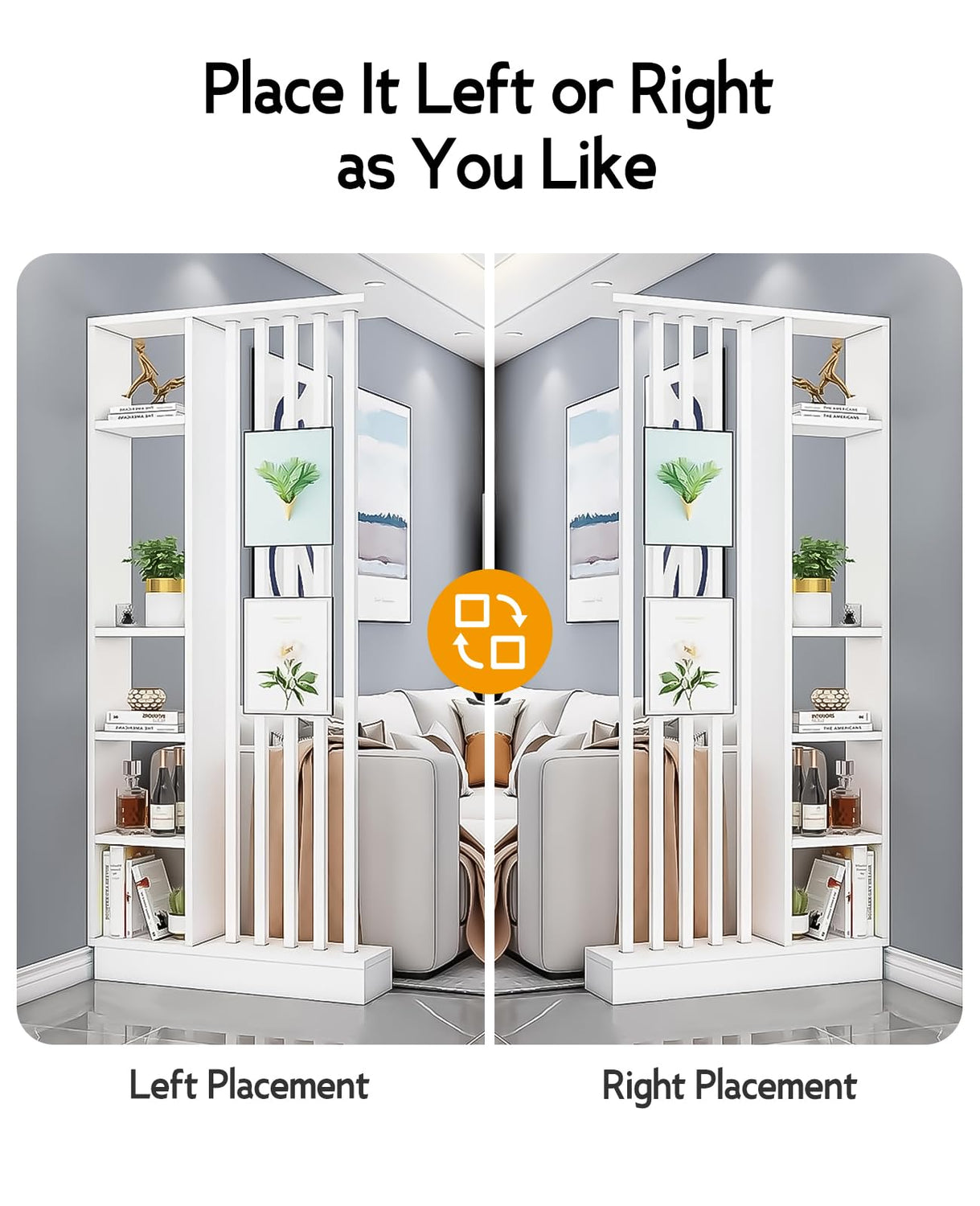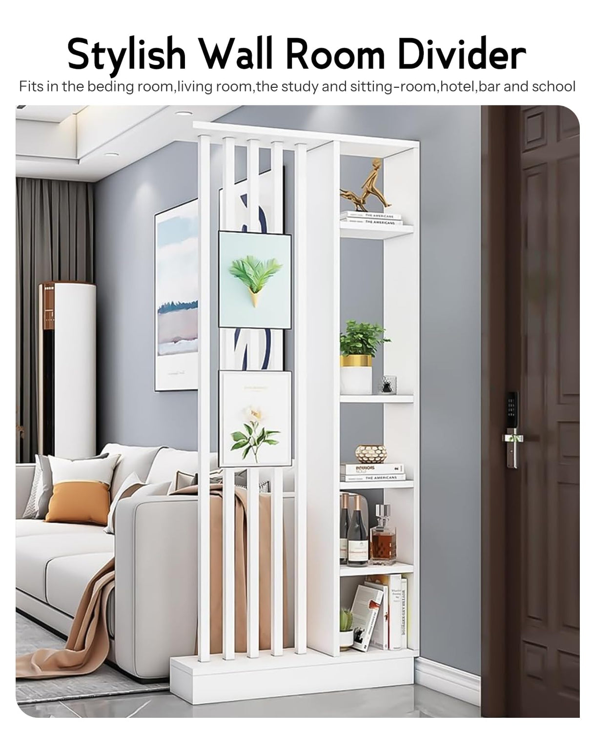 Wall Room Divider, Storage Cabinet Storage Display with Shelves, Modern Freestanding Wood Room Divider Screen, Wall Privacy Screens for Home Office Decorative (White,31.5" L x 9.5" W x 79.5" H)