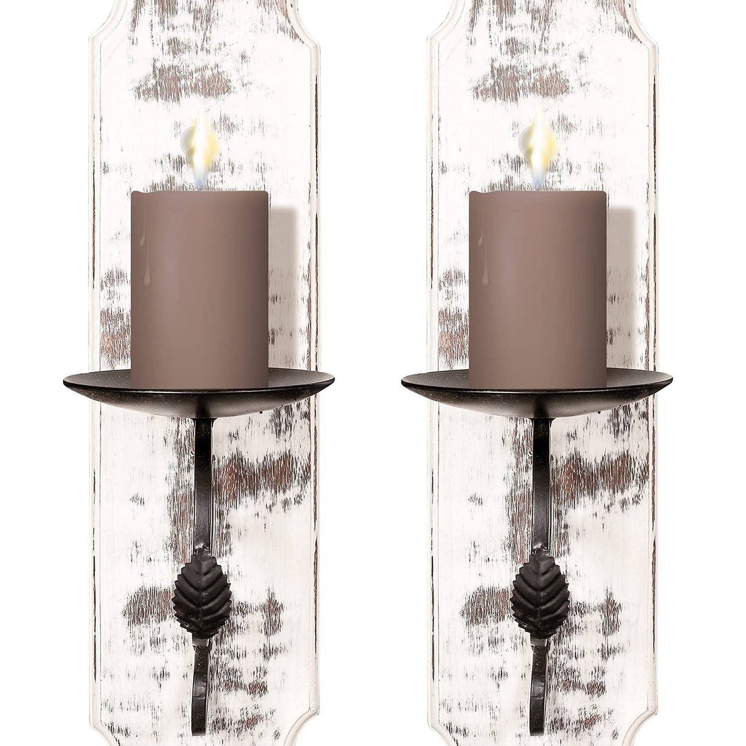 Wallmounted Pillar Candle Sconce,Wall Mount Rustic Candleholders, Wood Candle Holders,Floating Shelves,Hanging Shelf,Farmhouse Wall Décor,Large Wooden Handmade Sconces-15.5x4x6 White Wash Set of 2