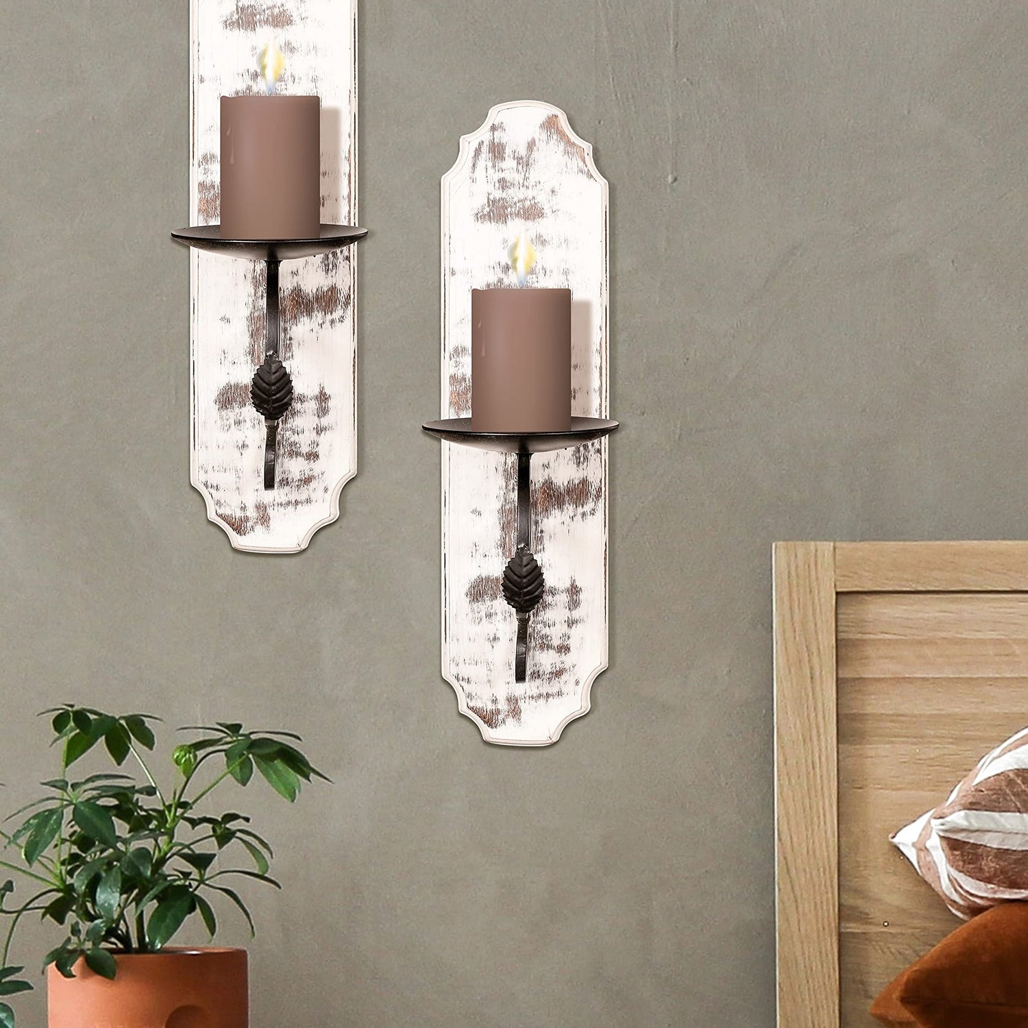 Details: Wallmounted Pillar Candle Sconce,Wall Mount Rustic Candleholders, Wood Candle Holders,Floating Shelves,Hanging Shelf,Farmhouse Wall Décor,Large Wooden Handmade Sconces-15.5x4x6 White Wash Set of 2