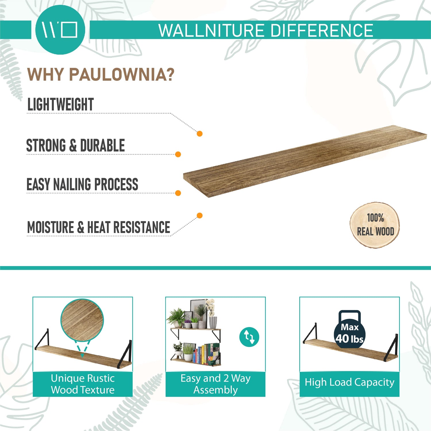 - Smart Choice: With Wallniture 36"x6" Bora floating wall shelves, use your previously wasted wall space to triple your storage capacity! Ideal to display everything from books, photo frames or wall art to indoor plants, succulents