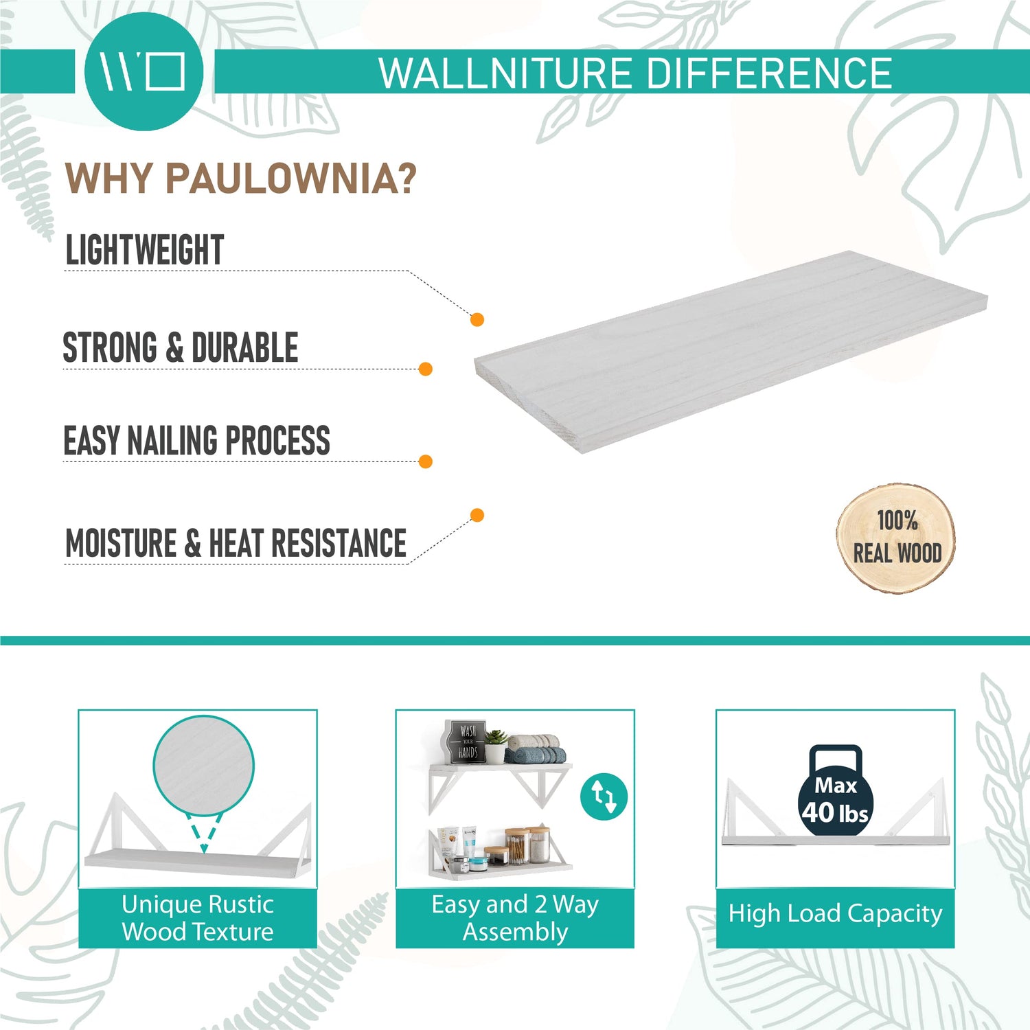 - Functionality-Wise: Wallniture Minori washed white floating shelves for bathroom are perfect to display and store everything from toilet paper, lotions, extra soaps, bathroom sets to bathroom accessories while upgrading your farmhouse bathroom decor
