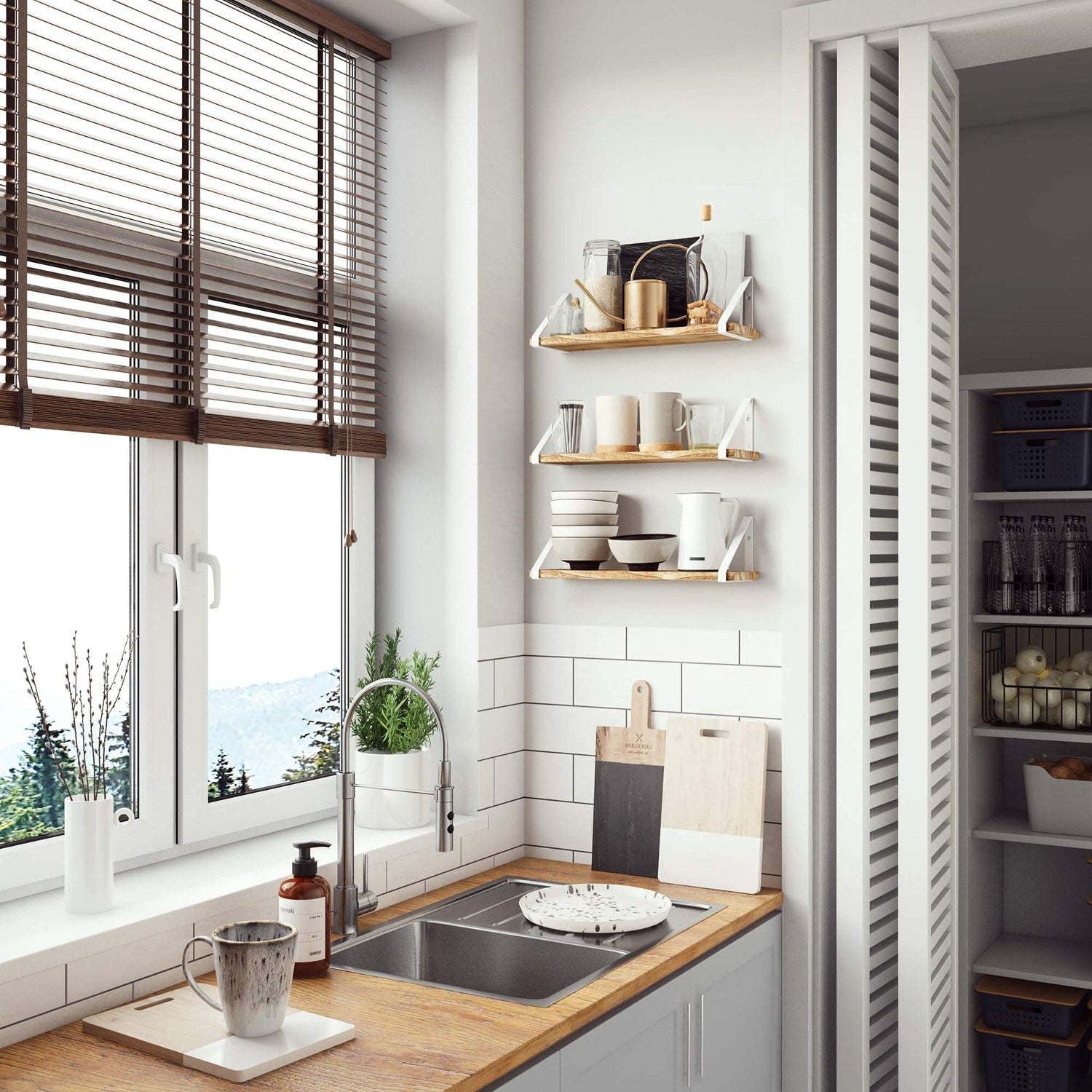 - Multifunctional: Just get creative and find more functions other than floating shelves for bathroom sets. Ponza floating shelf set of 3 can also act as kitchen shelf or a floating bookshelf, display shelf to fancy your living room decor, bedroom decor or farmhouse wall decor