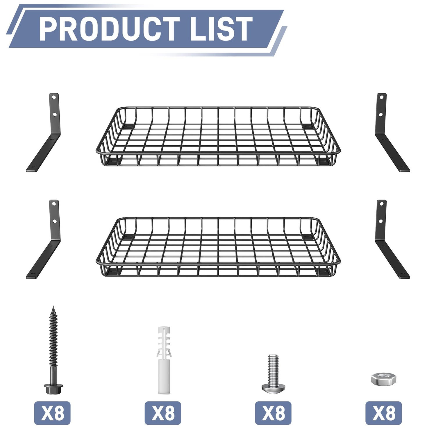 - Durable and Sturdy: Built to last, this wall-mounted shelving is crafted from high-quality steel with a powder-coated finish. Each shelf supports up to 60 lbs for dependable, long-term storage