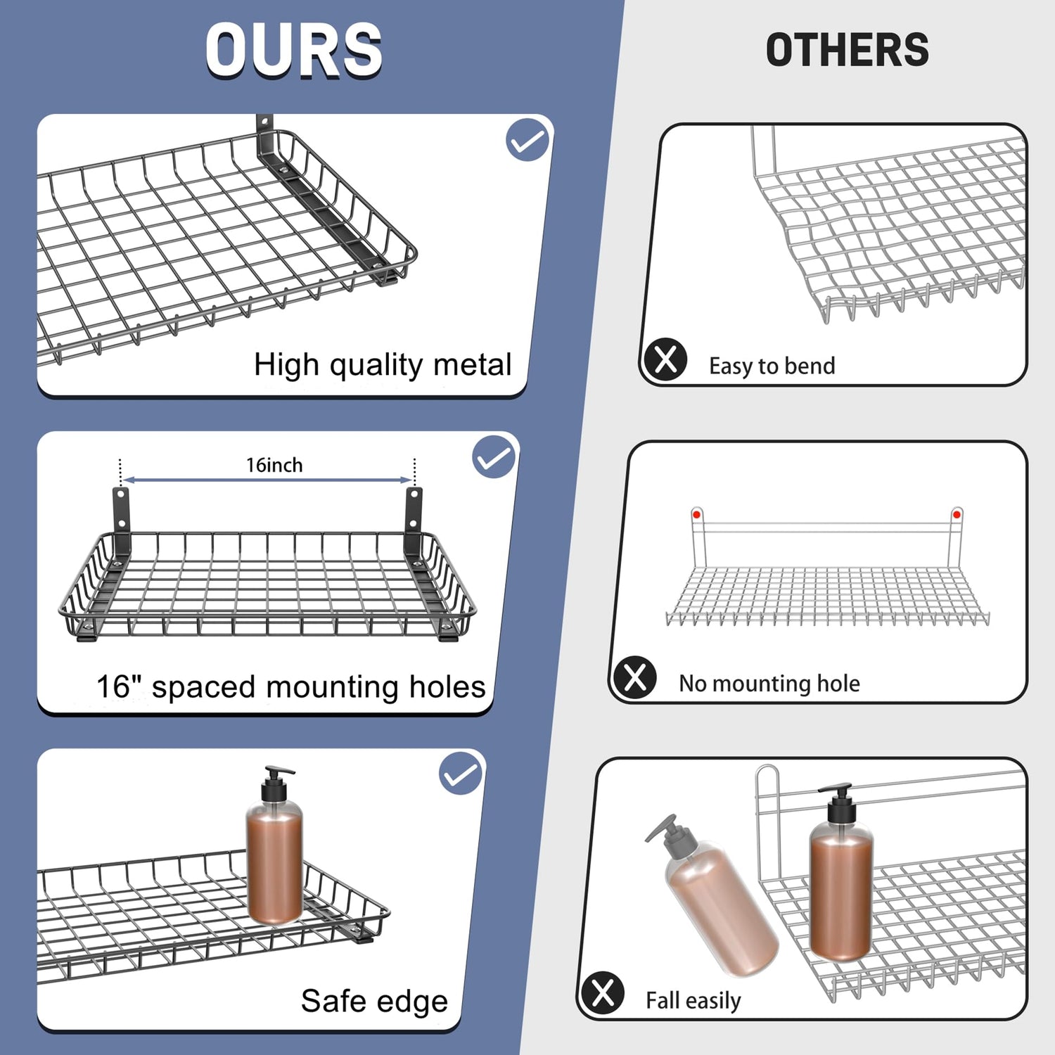 - Simple 16" Stud Mounting: Features 16-inch spaced holes for direct installation into wall studs. Comes with all hardware and step-by-step instructions—mount the shelves side by side or stacked to match your storage layout