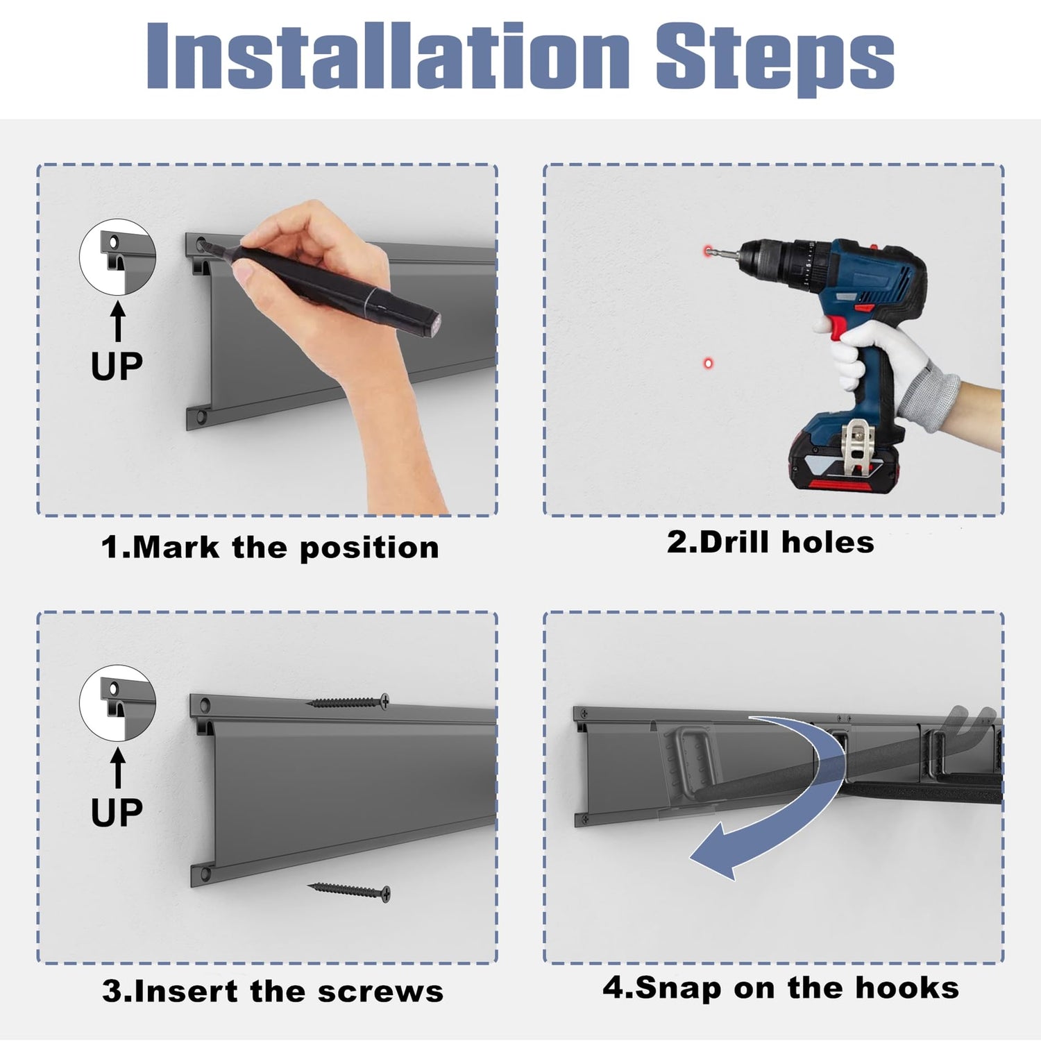 - Flexible and Adjustable Storage: Includes 4 tracks, allowing you to easily position hooks to create a customized setup that suits your specific storage needs