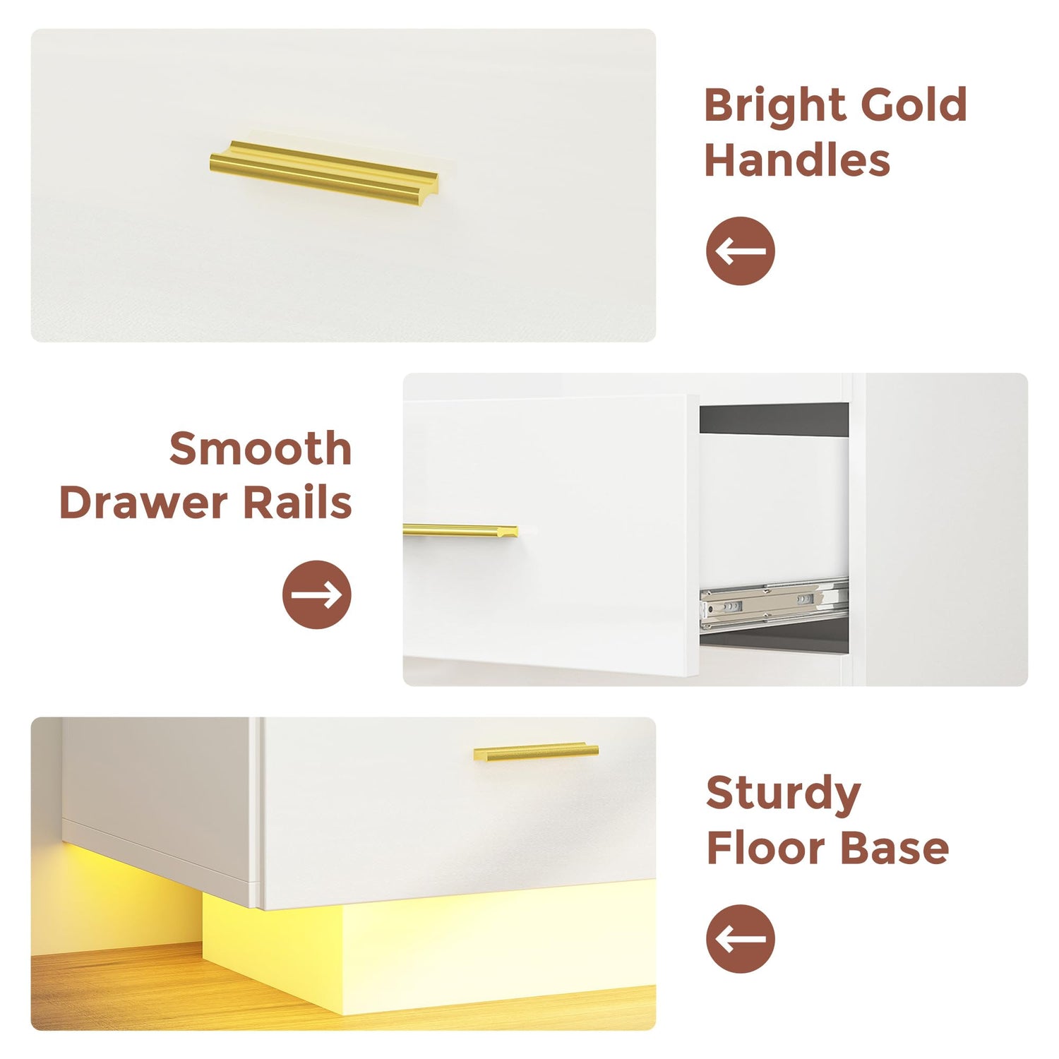 - 【EASY TO ASSEMBLE AND CLEAN】- The LED dresser comes with all the necessary tools and accessories for assembly. You can assemble the collapsible drawers in just a few simple steps. Besides, the highly polished surface protected by a coating makes the dresser not only durable but also easy to clean with just a damp rag.