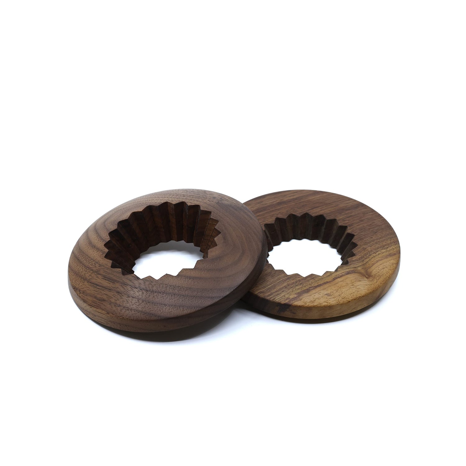 - AN ORIGAMI DRIPPER STABILIZER: The walnut dripper holder has grooves along the inner rim for stability. It sits the dripper higher and enables a more leveled bed
