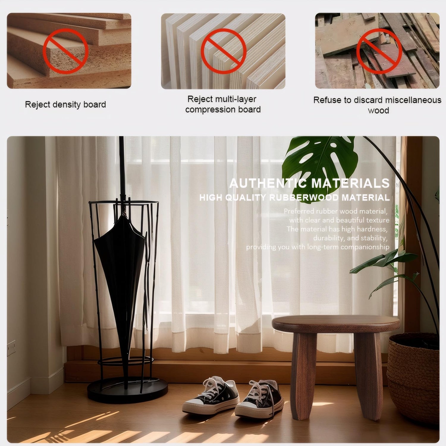 - (Natural Wood Grain Unique) Each stool retains the unique natural texture of rubberwood, the dark and staggered walnut wood grain and the legs have non-slip rubber pads and the edges of the product are rounded to prevent the risk of bumping and harming children