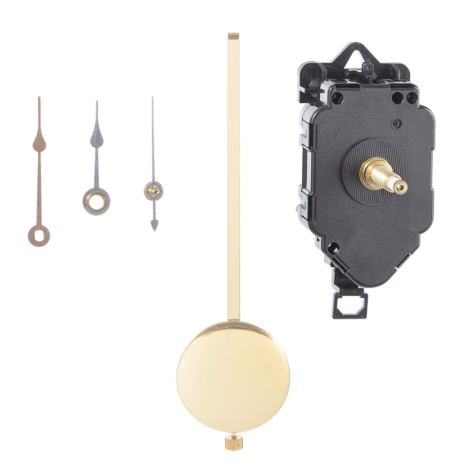 - Includes gold colored hands and pendulum