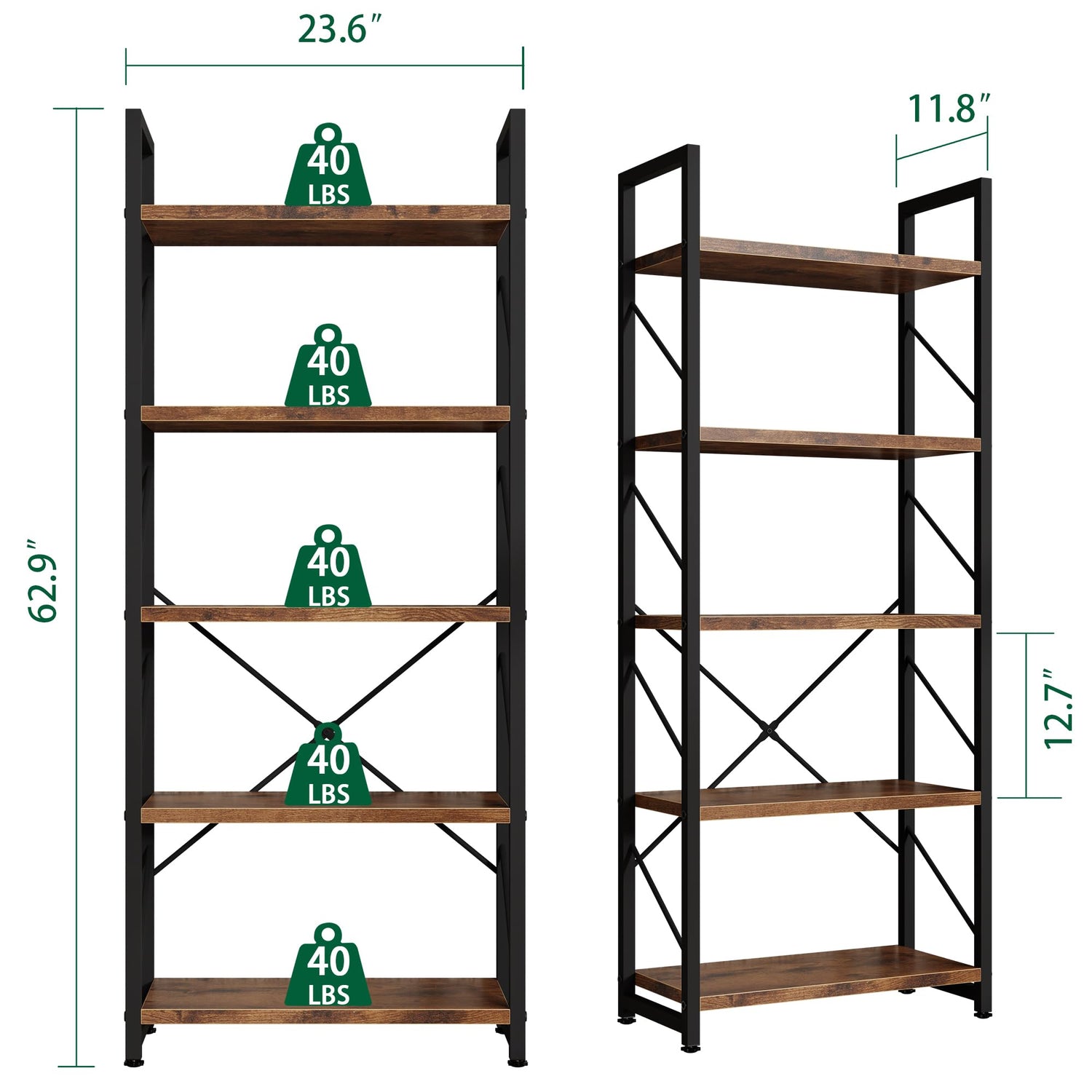 - 5-Tier Open Multifunctional Bookshelf:This 5 shelf bookshelf provides a very wide storage space, you can use it to place all kinds of items as you see fit. Books, photo albums, crafts, potted plants and etc. SIZE: 23.6"L × 11.8"W × 62.2"H