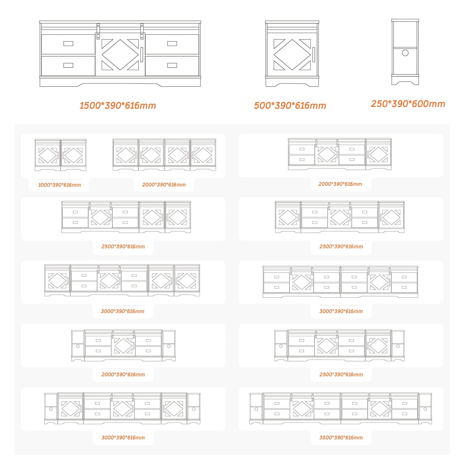 - 【 Multifunctional】Featuring sliding barn doors, adjustable shelf in the center behind the barn door, and 8 drawers, this media console offers plenty of storage or display space for CDs, DVDs, game cartridges, decorative items, and more. The sliding barn doors on the TV cabinet make it easy to access items while keeping dust out. You also have the option of sliding the doors to either side of the TV stand to display items on the shelves inside.