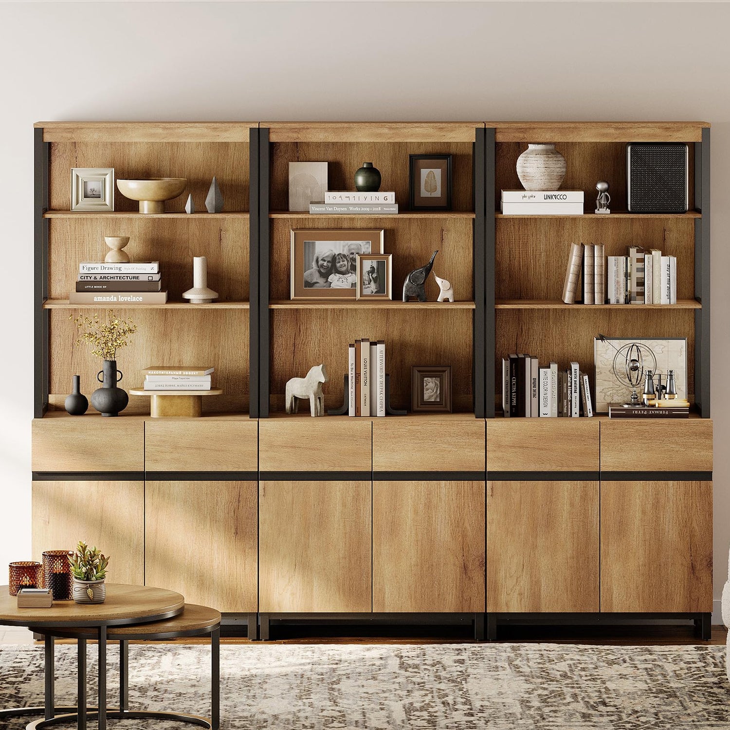 - Customizable Storage: The bookshelf complete with 3 removable 3-tier book shelf and 3 side cabinet. Equipped with adjustable shelves, this freestanding bookcase allows you to personalize shelf heights to accommodate books, decor, or office supplies, ensuring both functionality and style.